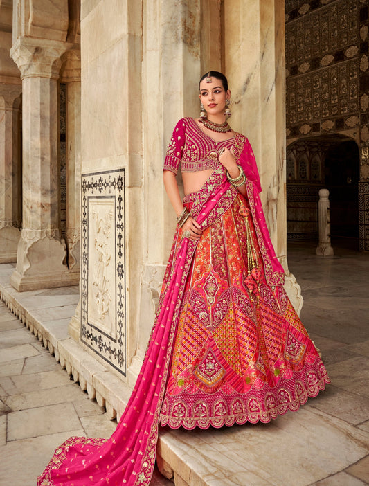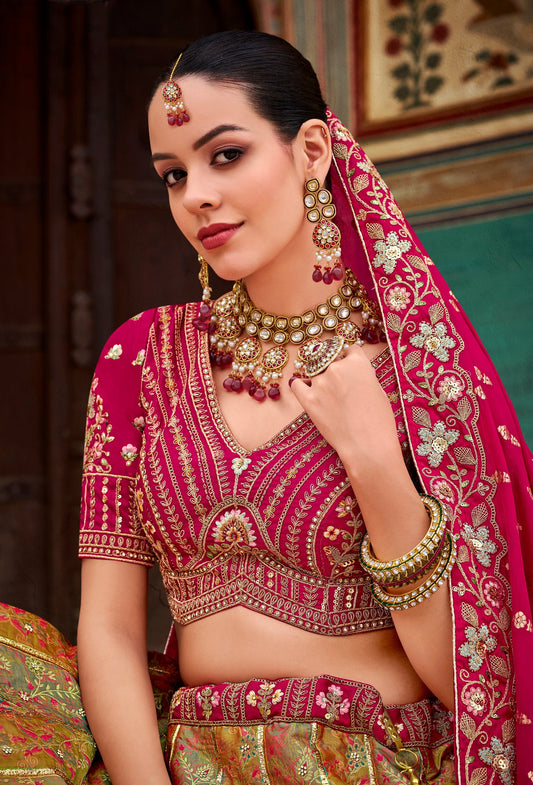 Rani Silk Bridal Wedding Lehenga Set with Heavy Net Dupatta