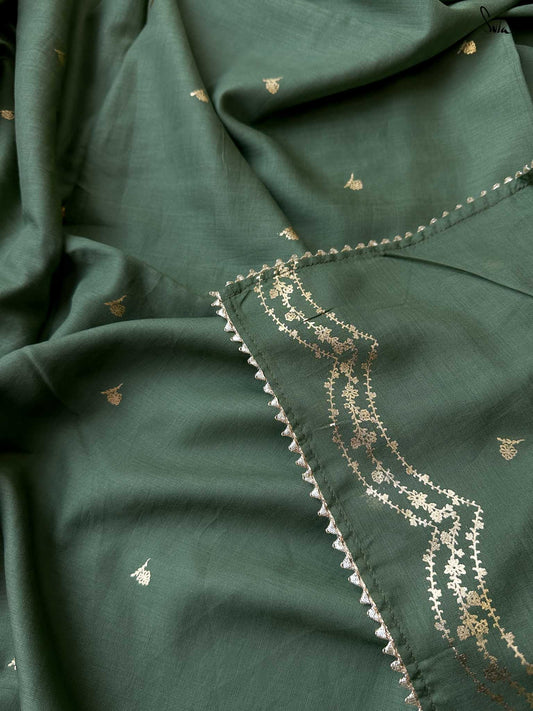 Mehndi Green Saftey Pin Embroidered Top With Marble Printed Pants
