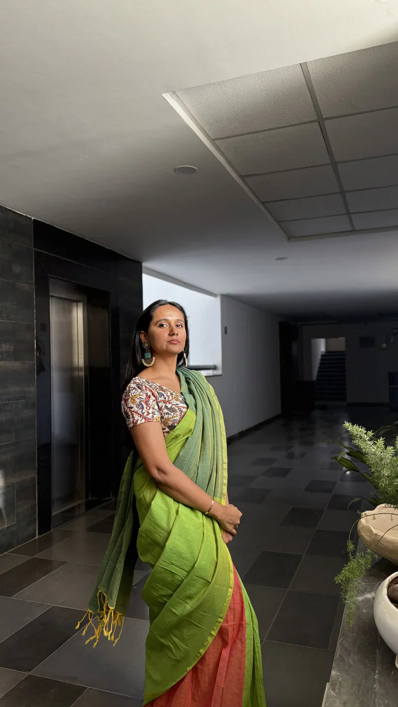 Aanchal - Saree (Unstitched) in Forest hues in Khadi fabric