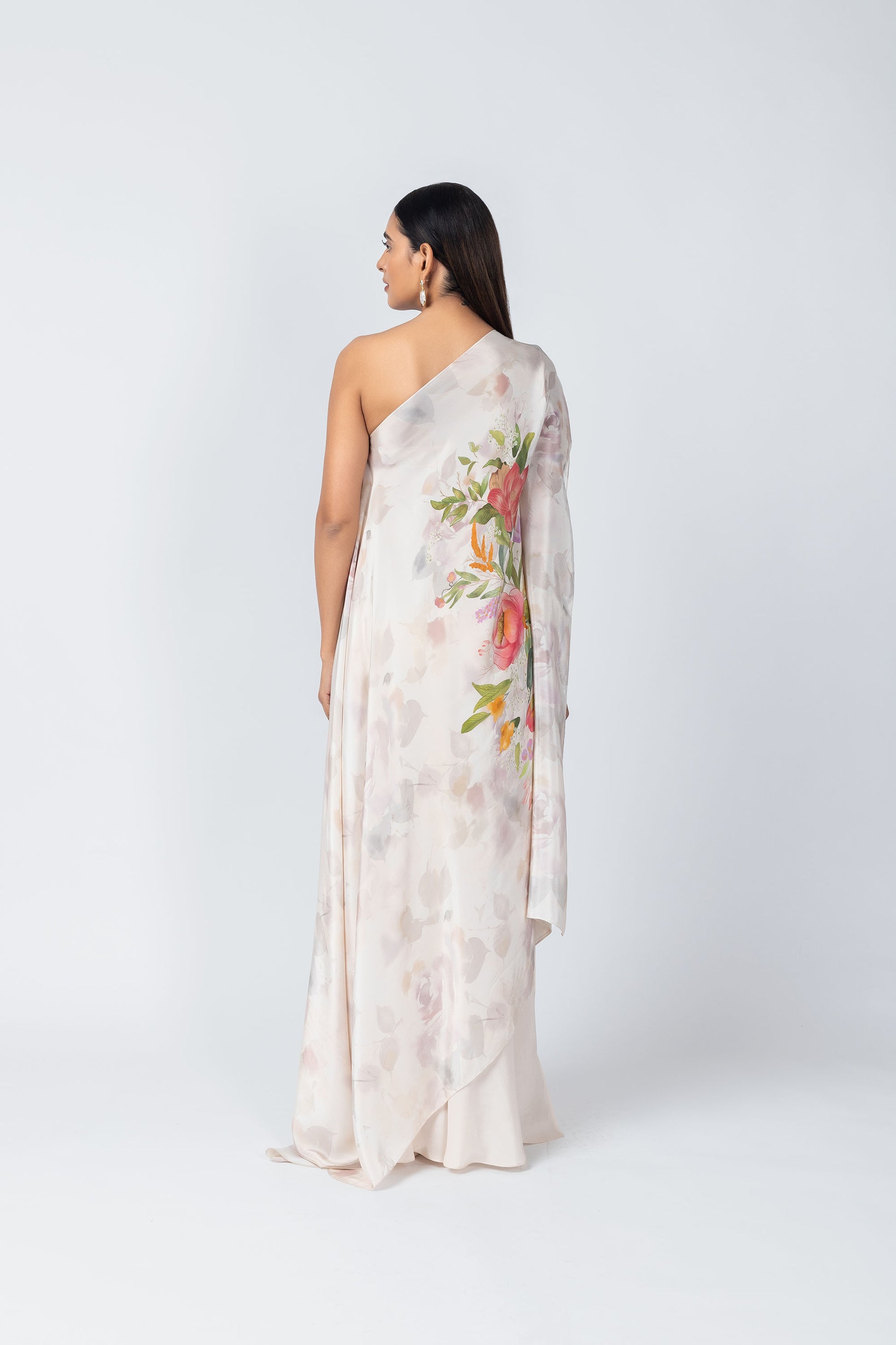 Afreen Off-Shoulder Natural Crepe Tunic with Floral Texture and Ivory PalazzoLong flowy off-shoulder natural crepe tunic with floral texture and motifs. Paired with elegant ivory palazzo pants for a graceful finish.Product Type: Co-ord SetStyle Type: Off-Shoulder Tunic with PalazzoPattern: Textured & PrintedLength: Floor LengthClosure: Back ClosureLining: Fully Lined.