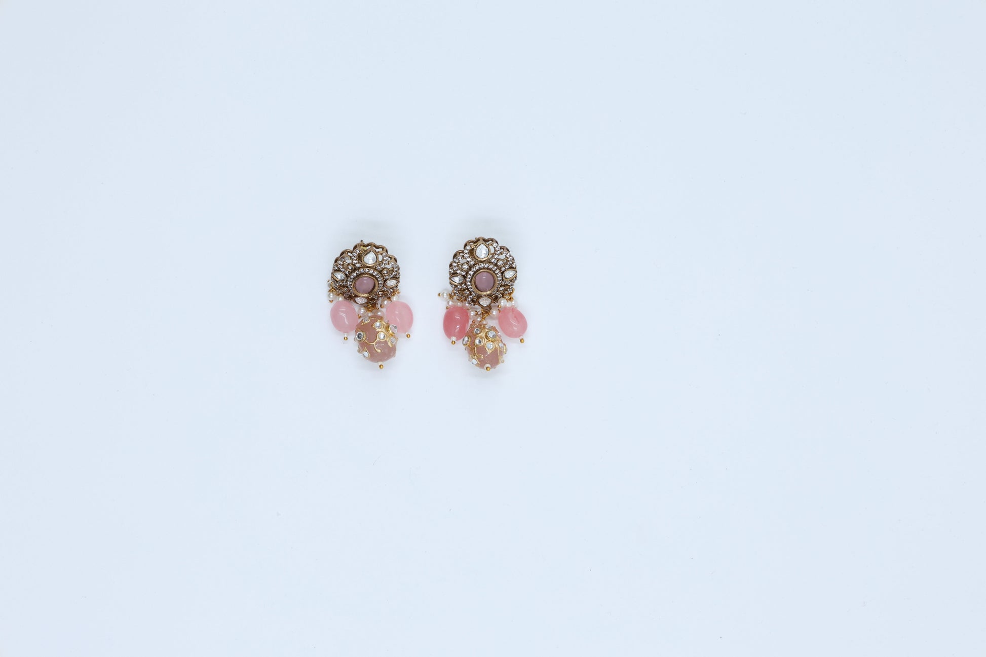 This Kundan Victorian Elegance Set combines traditional and modern styles to create a truly elegant look. The delicate pink color and intricate Kundan design make it perfect for any special occasion. Crafted with high-quality materials, this set exudes sophistication and grace. Elevate your style with this stunning piece.