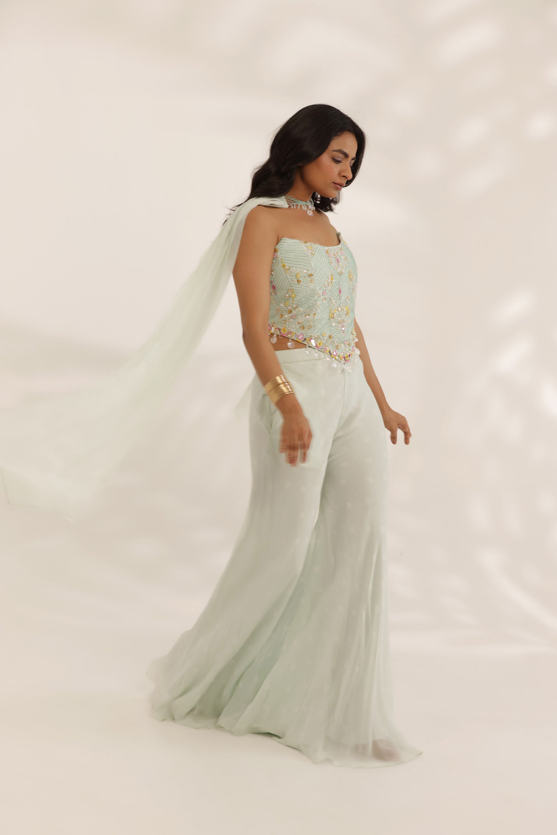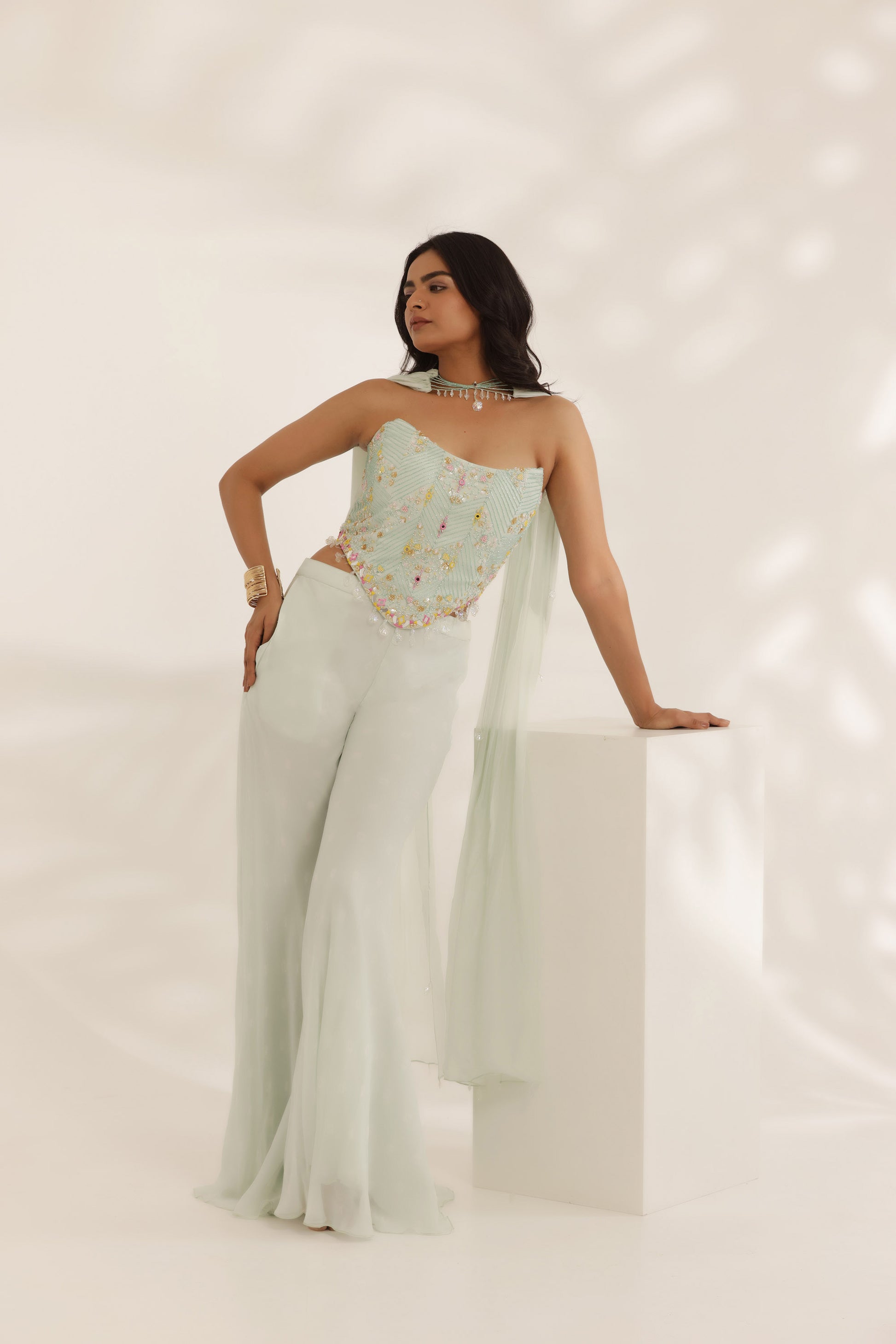 Bandhani corset-e-khas mint green Cocktail pant set