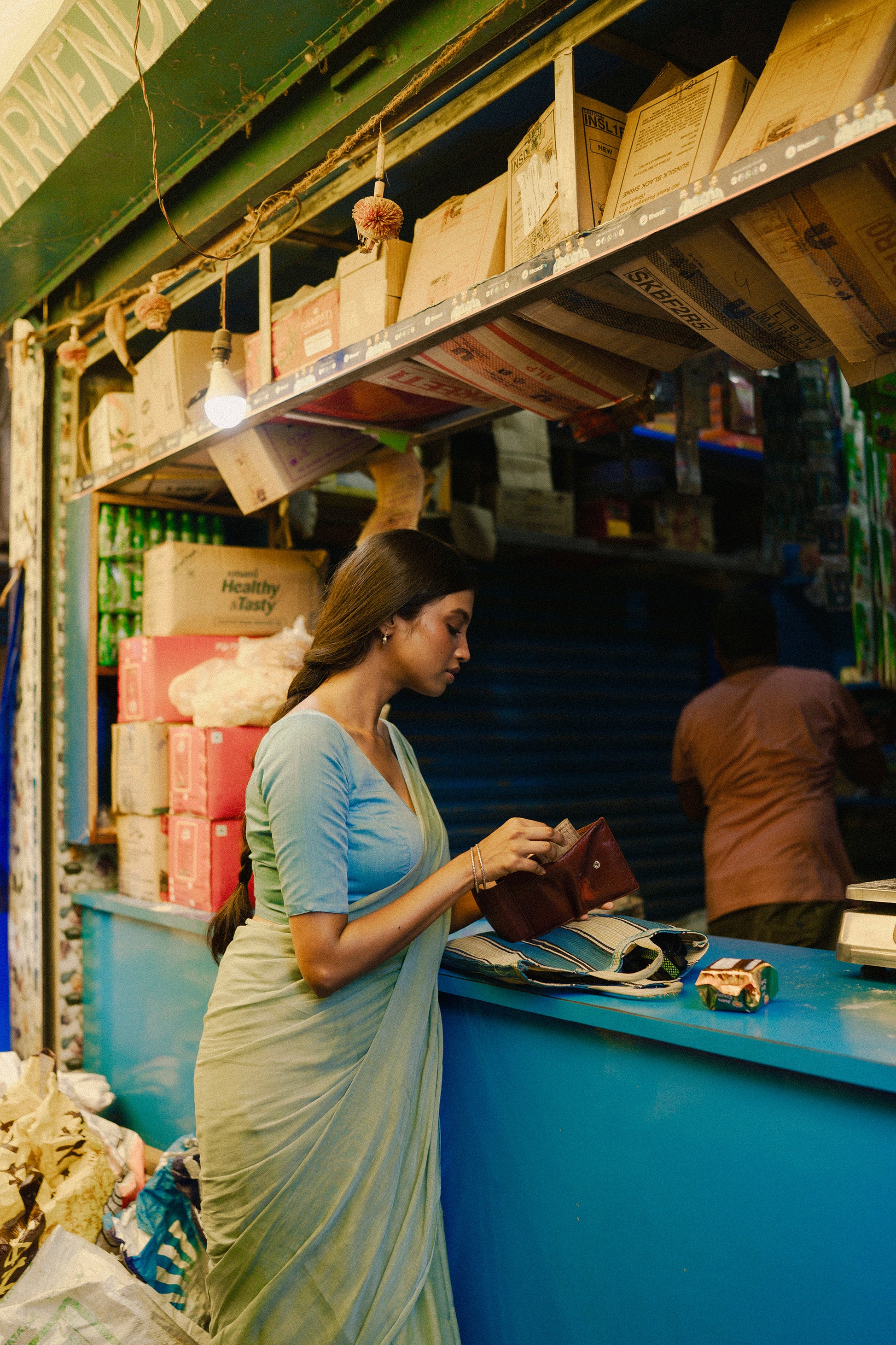 Glancing at the clock, she hurriedly prepared herself, taking her vegetable shopping bag and an umbrella, for the city's unpredictable weather. As she navigated through the market, she engaged in negotiations, carefully verifying each item against her meticulously crafted list. The process of selecting the perfect produce and essential groceries brought her a sense of satisfaction and control over her household needs.