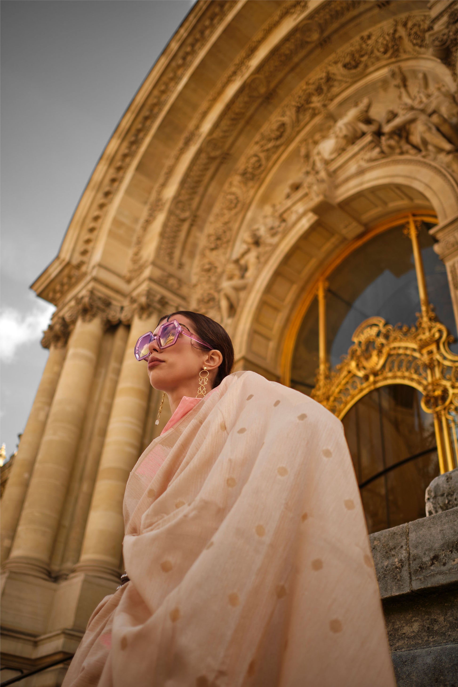Does your wardrobe need more versatility? Then, check out this. Let your skin feel the refreshing touch as you adorn this superior-quality lightweight Saree to match the overall modest design.