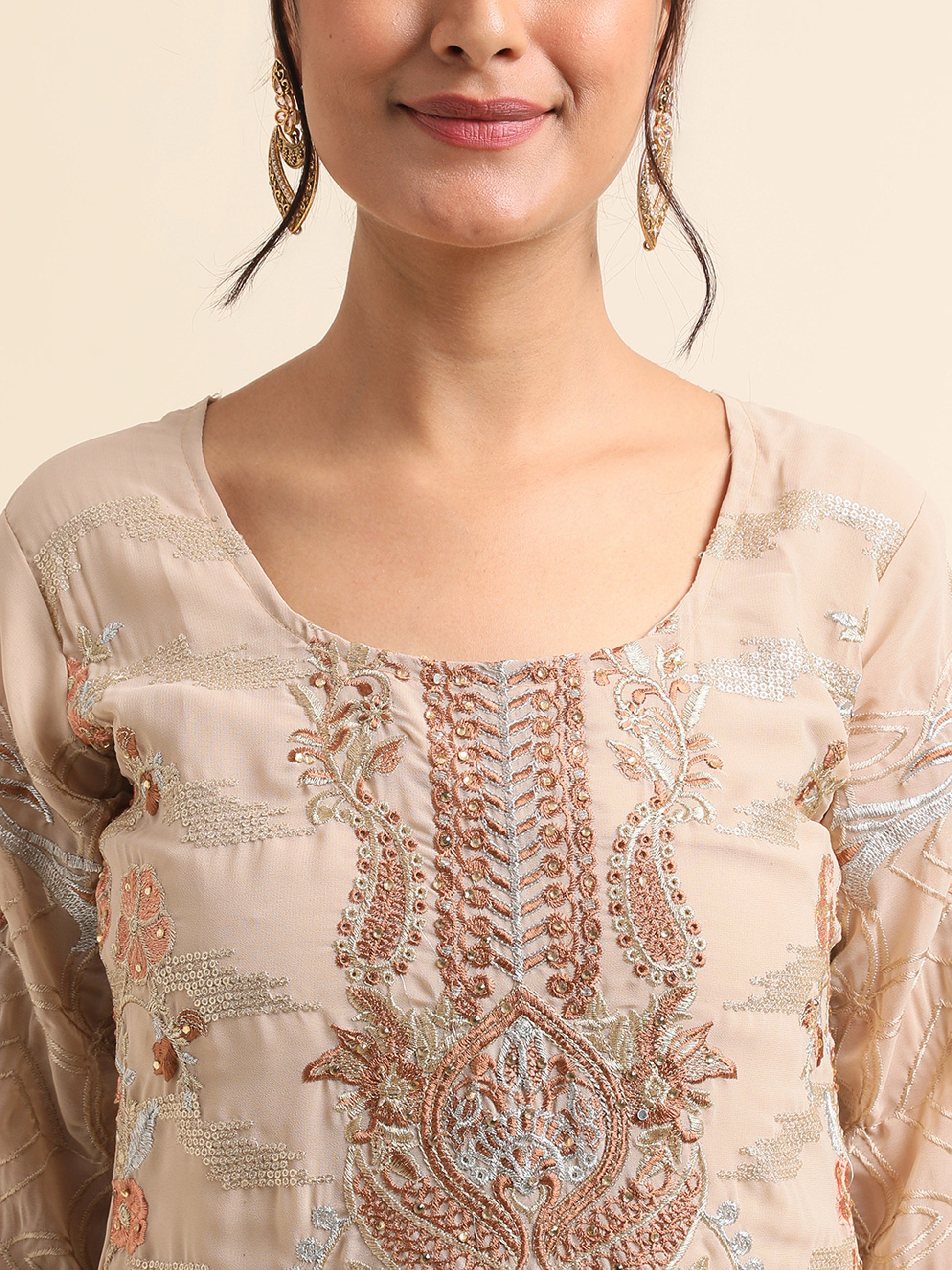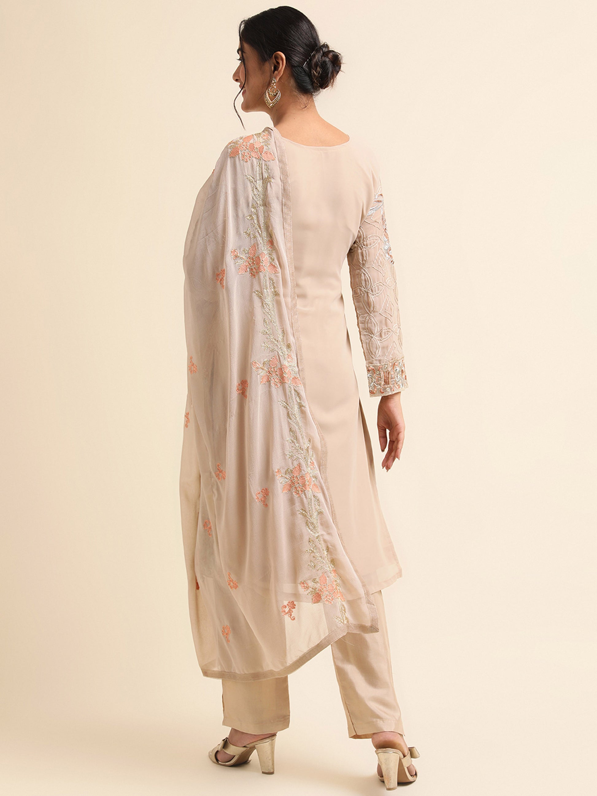 Beige Zari embroidered Faux Georgette Surya pakistani suit