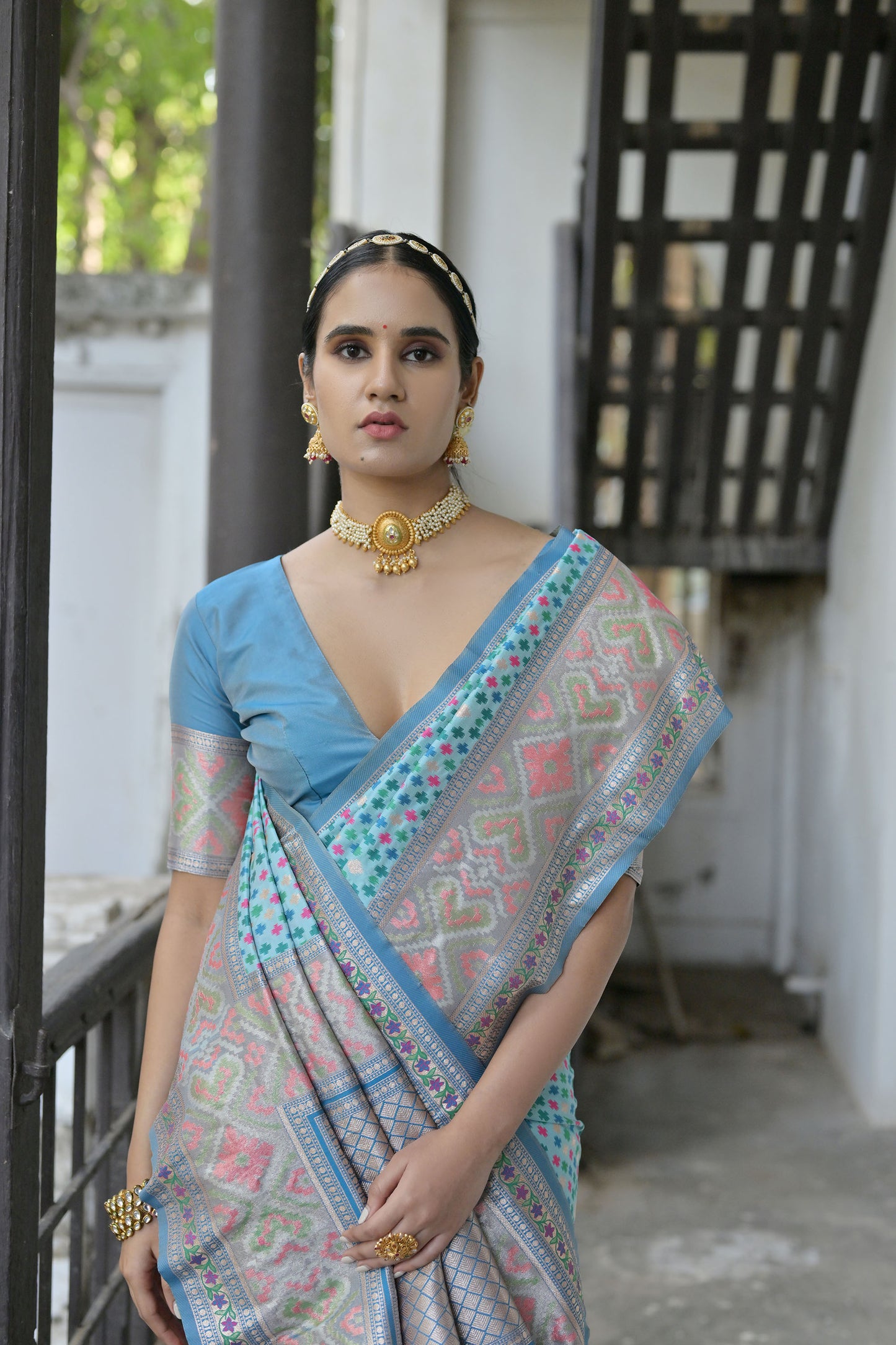 Bhakti Patola Firozi Paithani Silk meenakari weave Saree