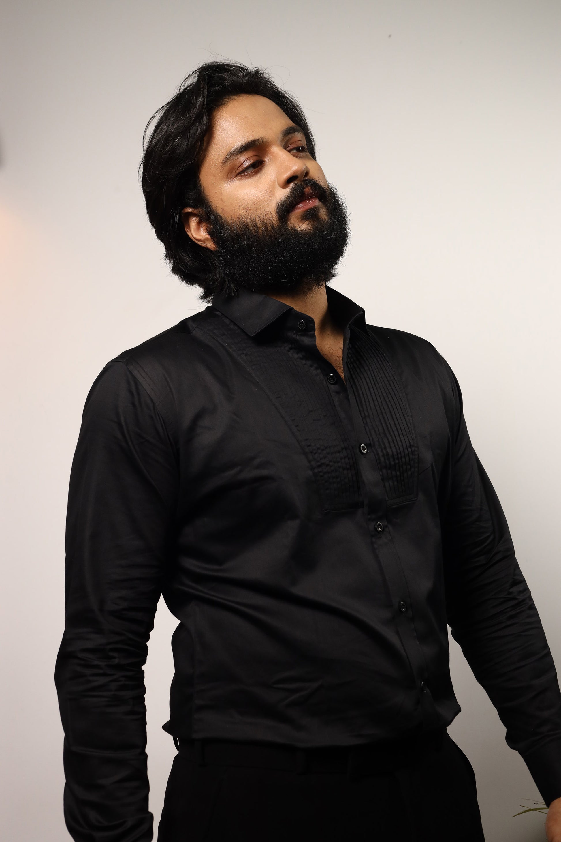 Black Giza Cotton Black Pintuck Shirt