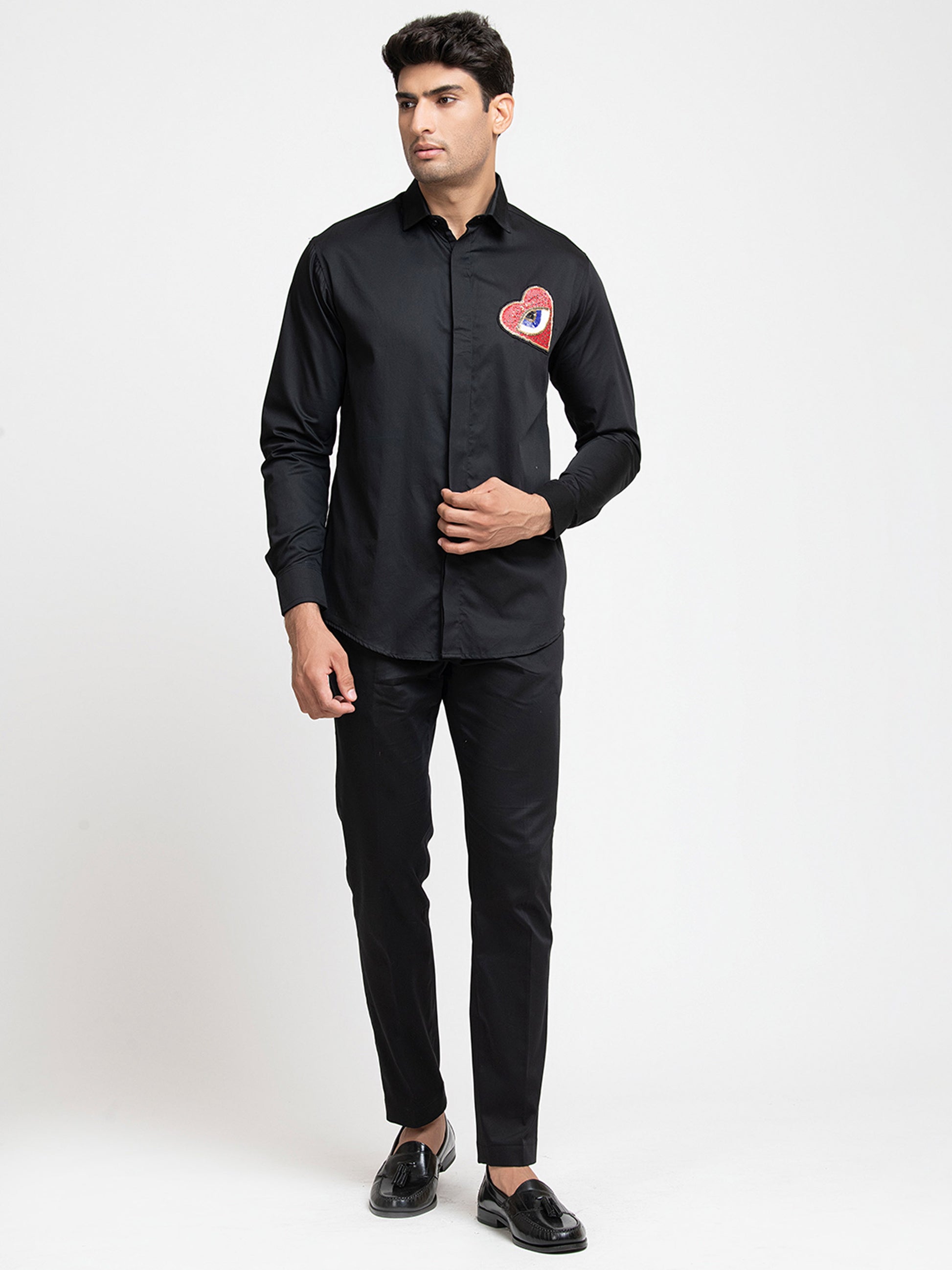 Black Giza Cotton Red heart embroidery shirt