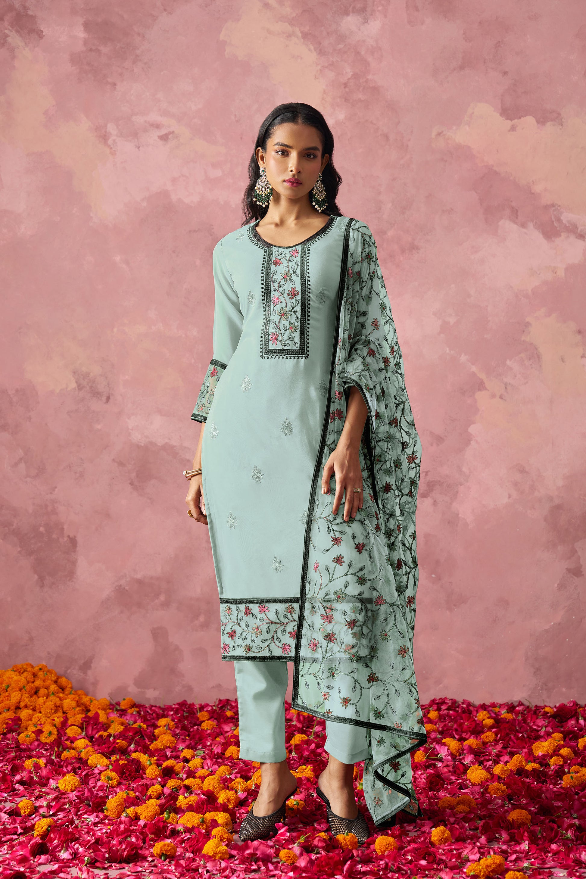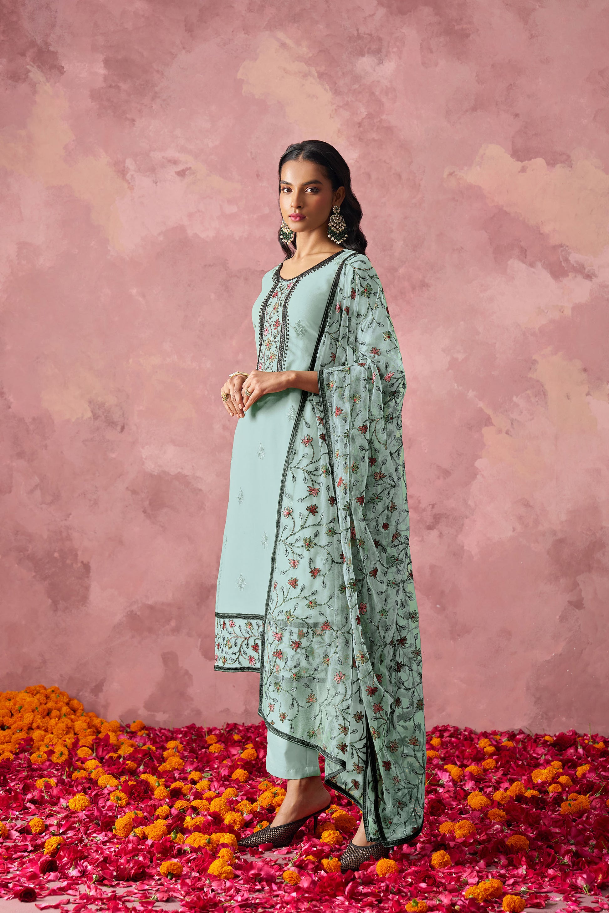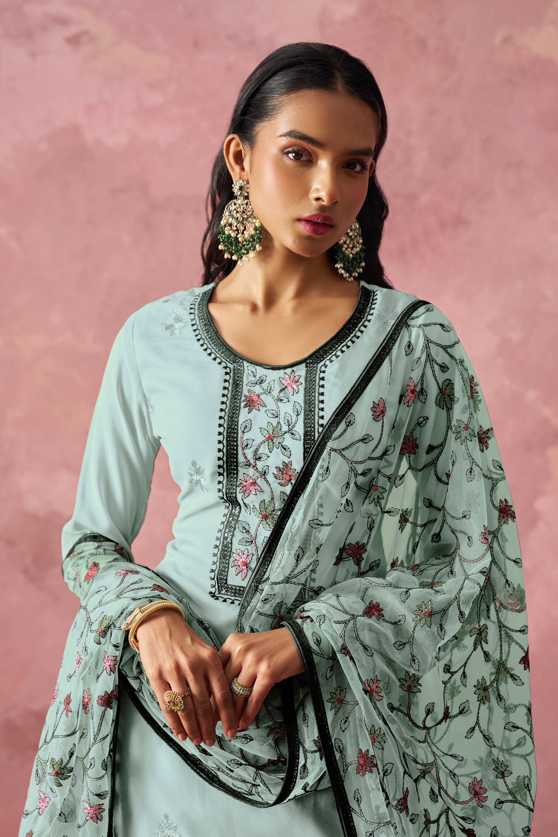 Blue Georgette Sequins Embroidered Festive Kurta Set