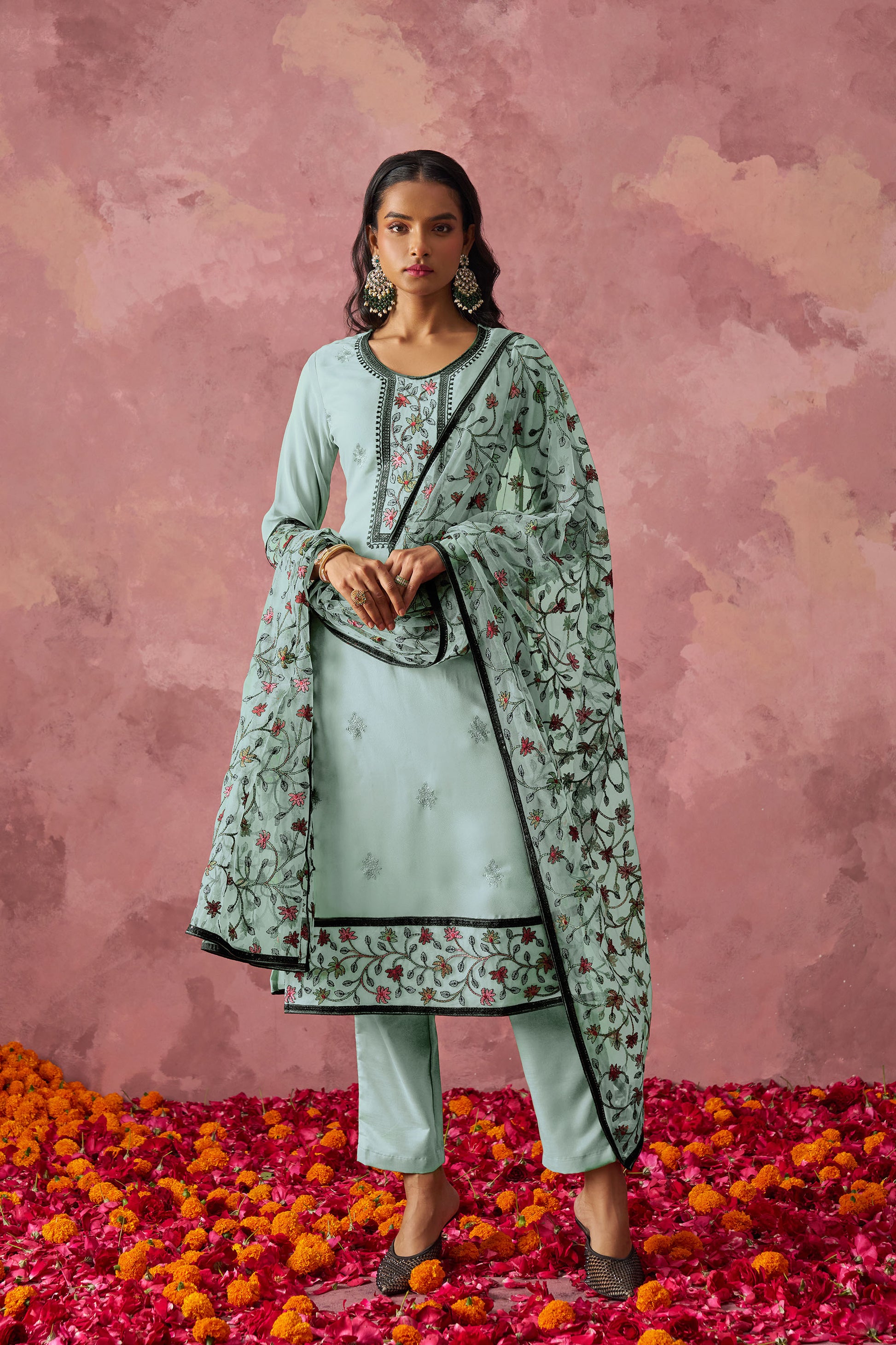 Does your wardrobe need more versatility? Then, check out this . Let you feel the refreshing touch as you adorn this superior-quality Blue Georgette Sequins Embroidered Festive Kurta Set to match the overall modest design. If you're yearning to make a fashion statement in your outfit, pick this thread Work for any occasion, such as wedding receptions, engagement parties, and sangeets. A Bridesmaid would look gorgeous in this Blue Georgette Sequins Embroidered Festive Kurta Set. Don't wait. Just go ahead and order.