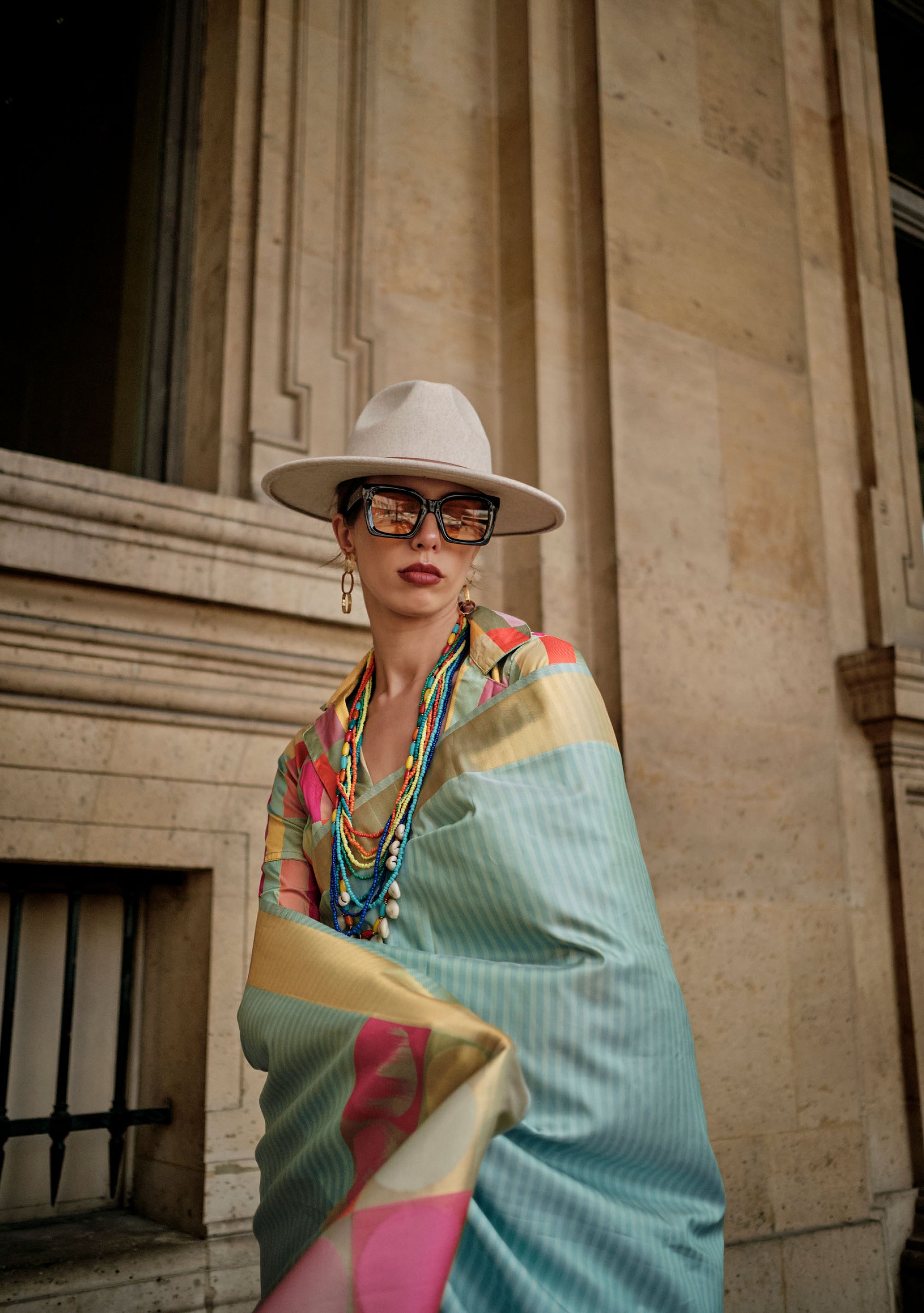 Does your wardrobe need more versatility? Then, check out this. Let your skin feel the refreshing touch as you adorn this superior-quality lightweight Saree to match the overall modest design.