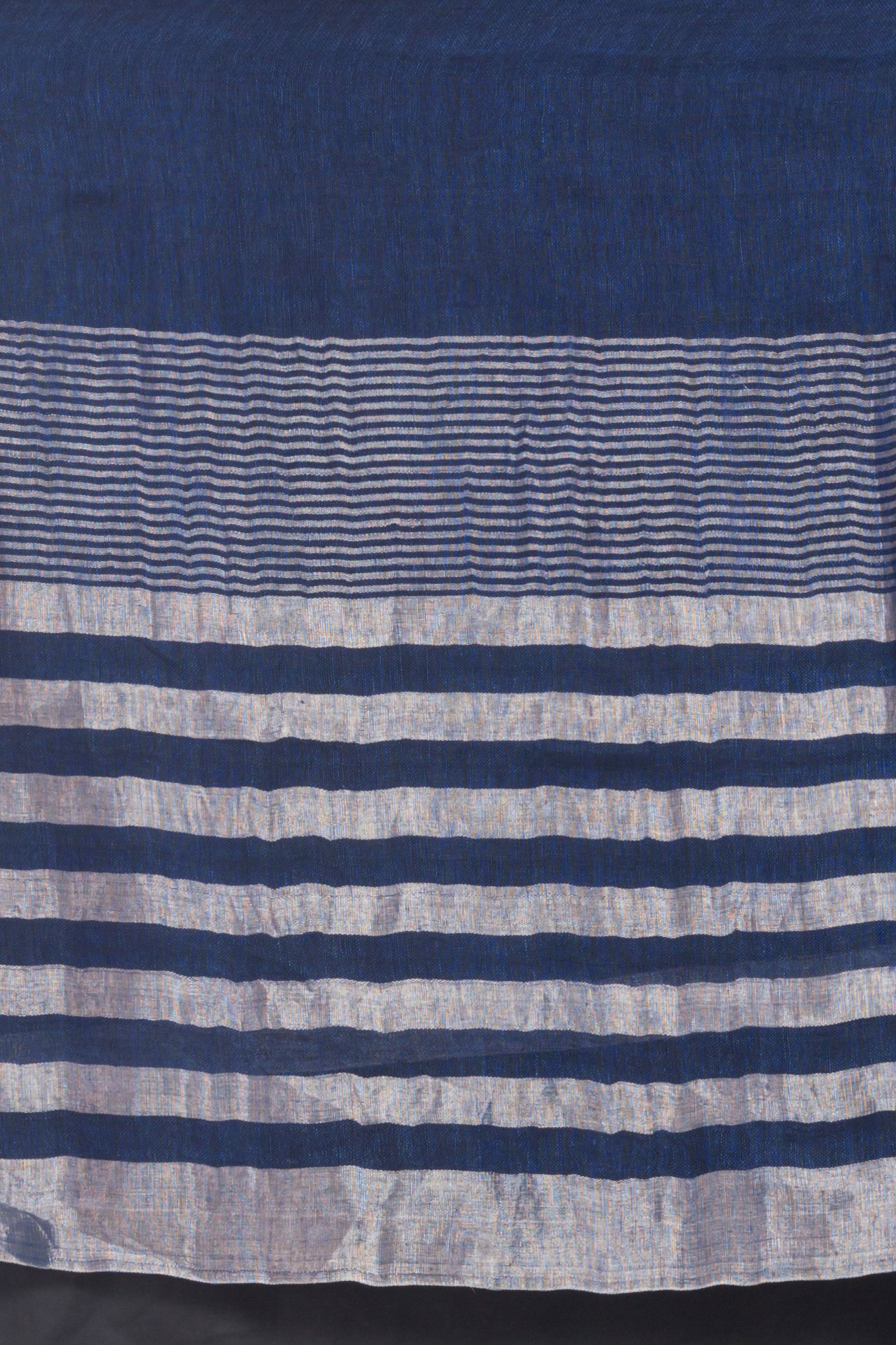Blue Linen Saree With Silver Zari Pallu And Border