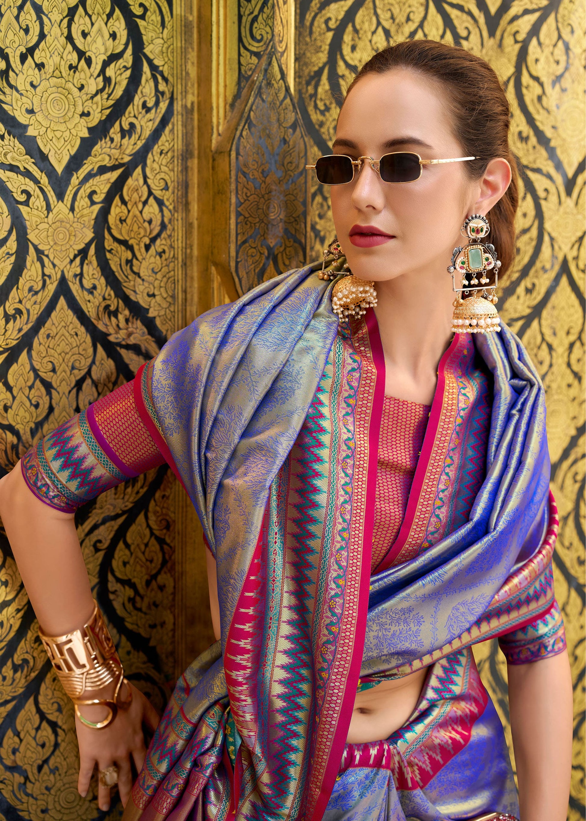 Blue Rajmata Tissue Silk Saree with Zari weaving