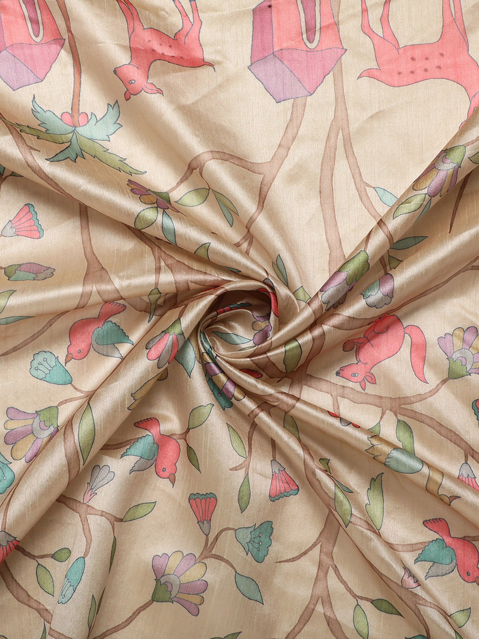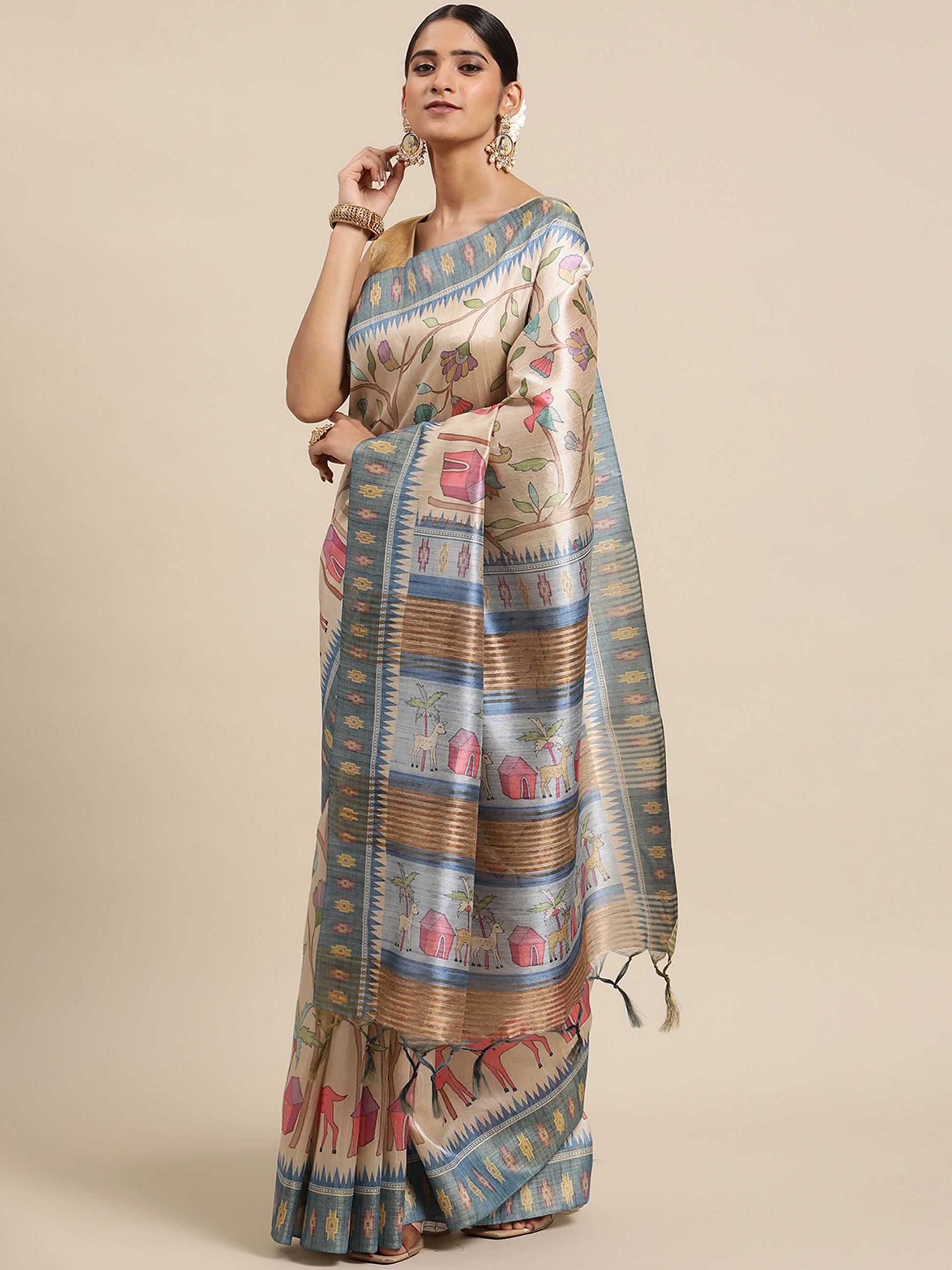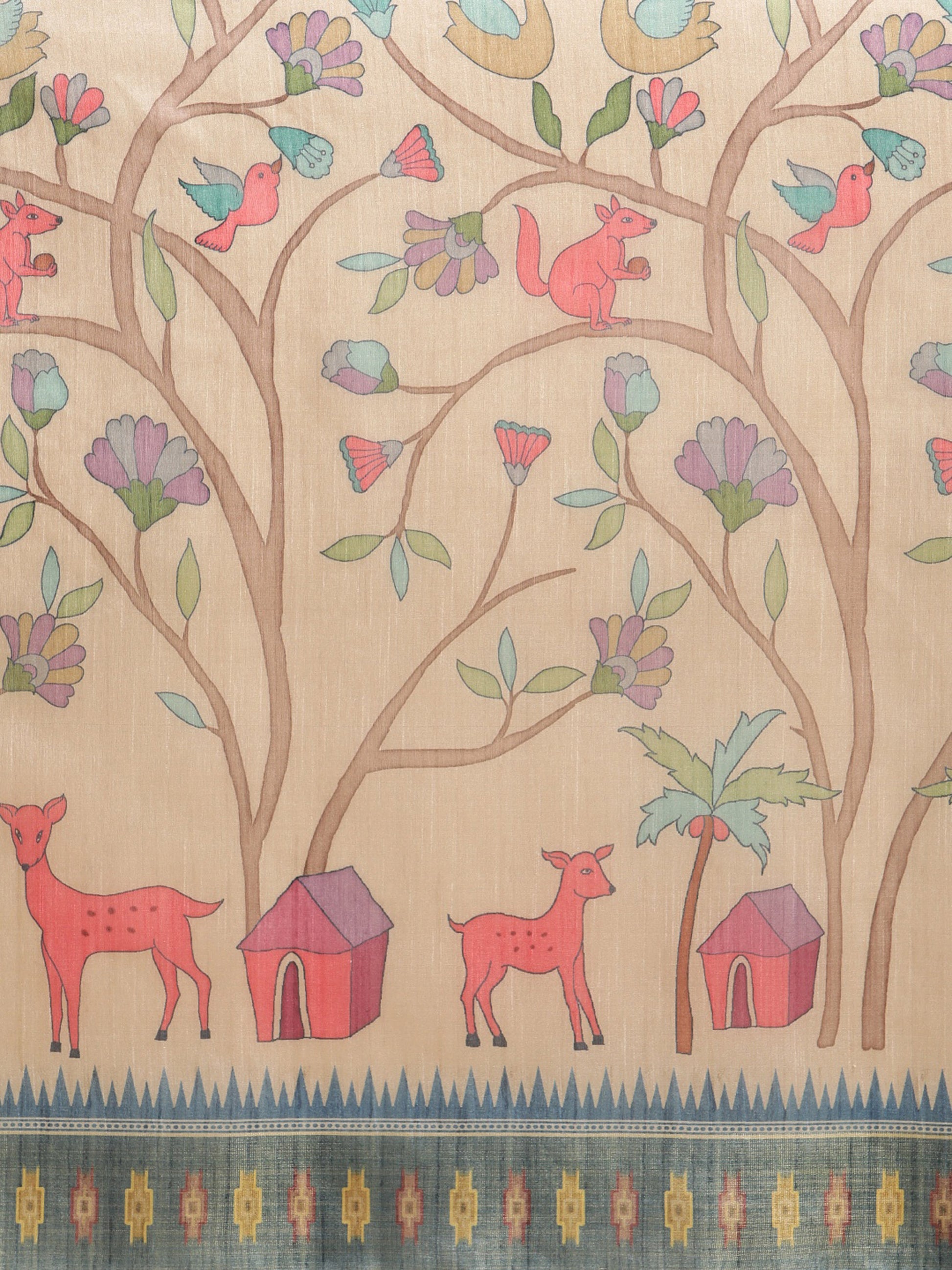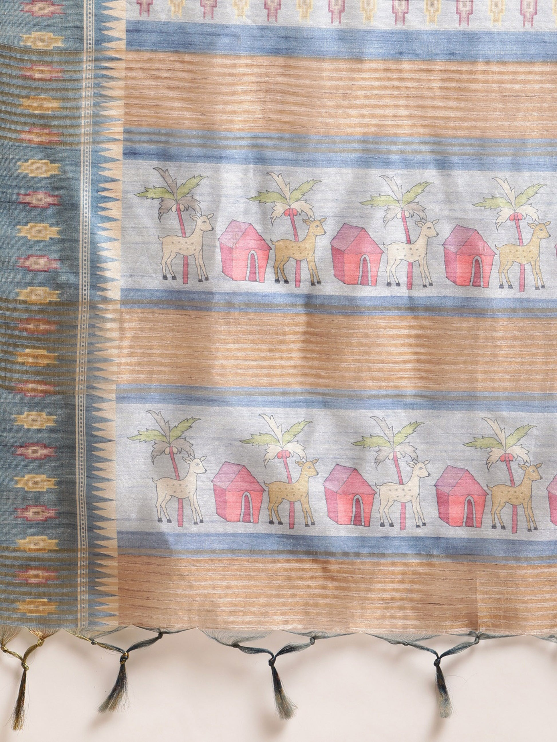 Blue Soft Tussar Silk Printed Kalamkari saree