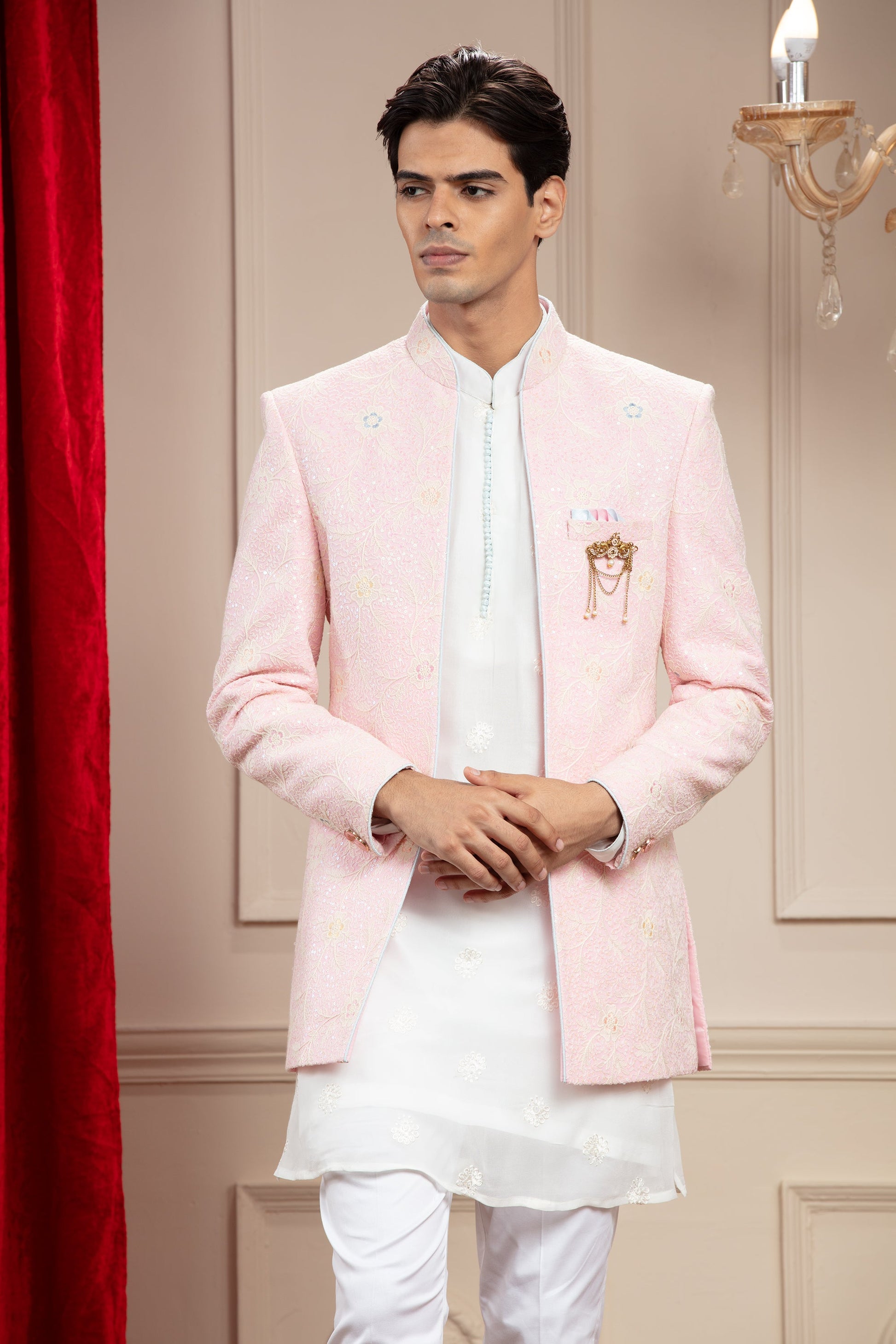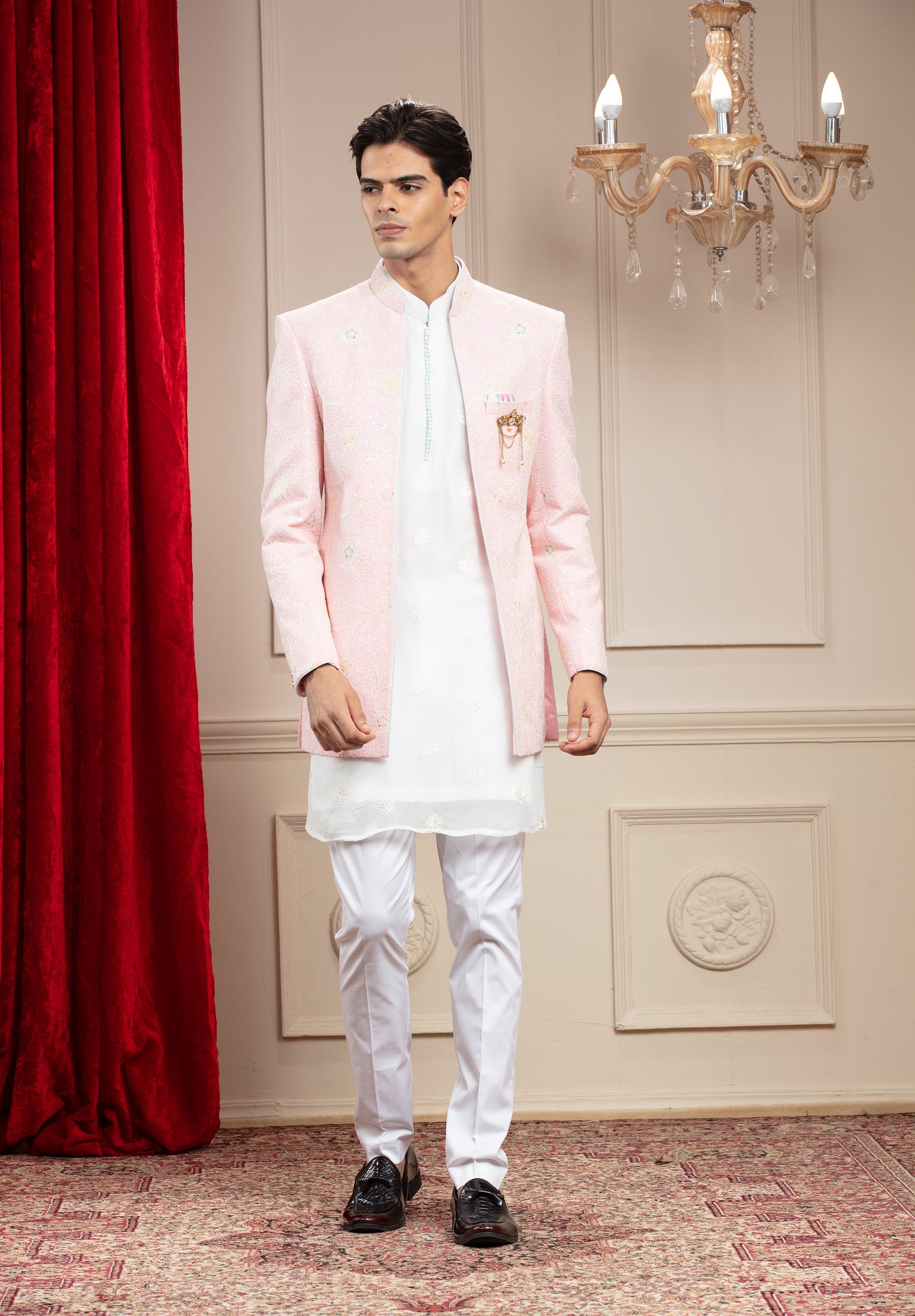 Blush Pink Open Jodhpuri with Resham Thread work and embellishments