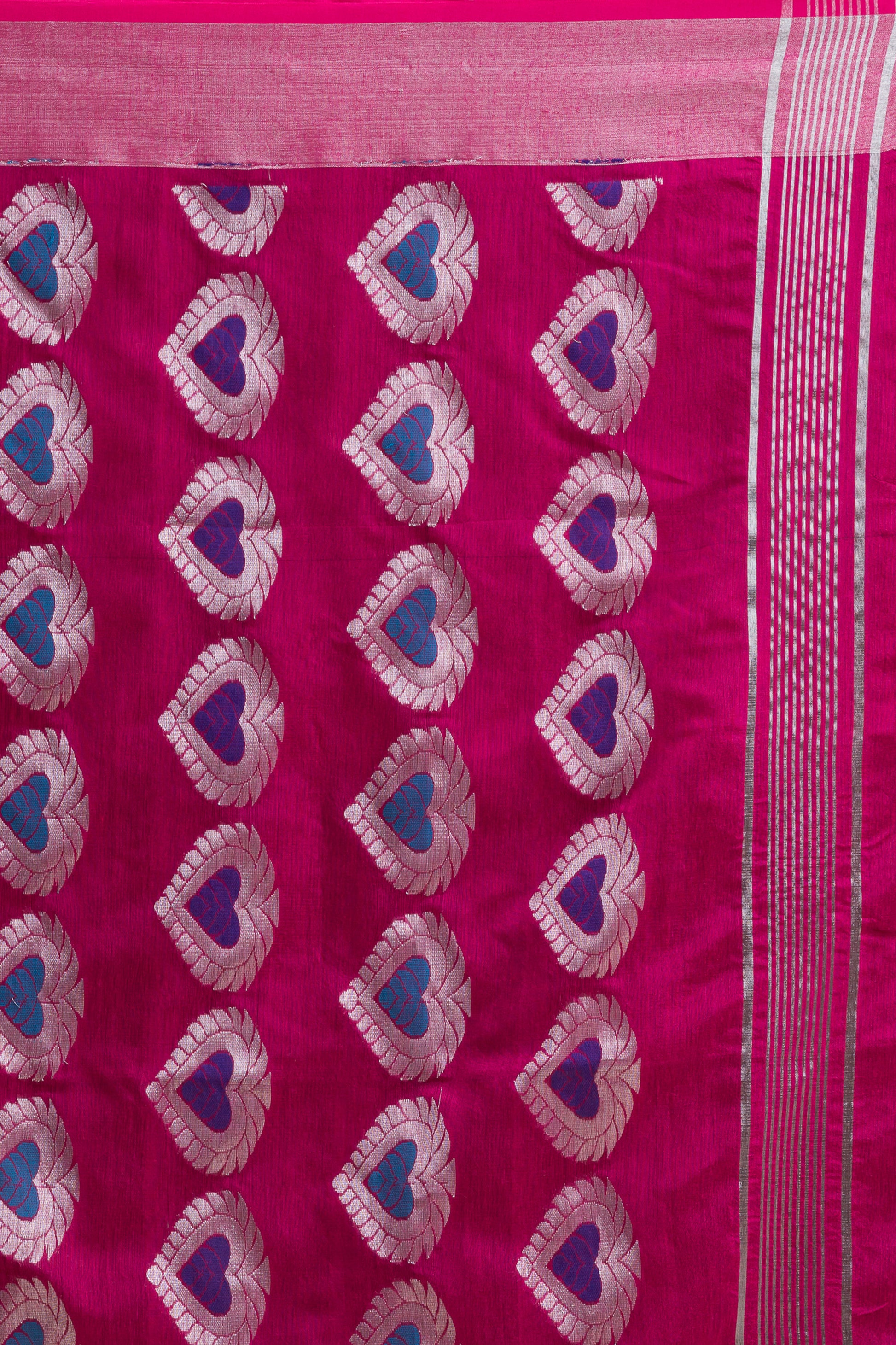 Bright Pink Cotton Blend Handloom Jamdani Saree