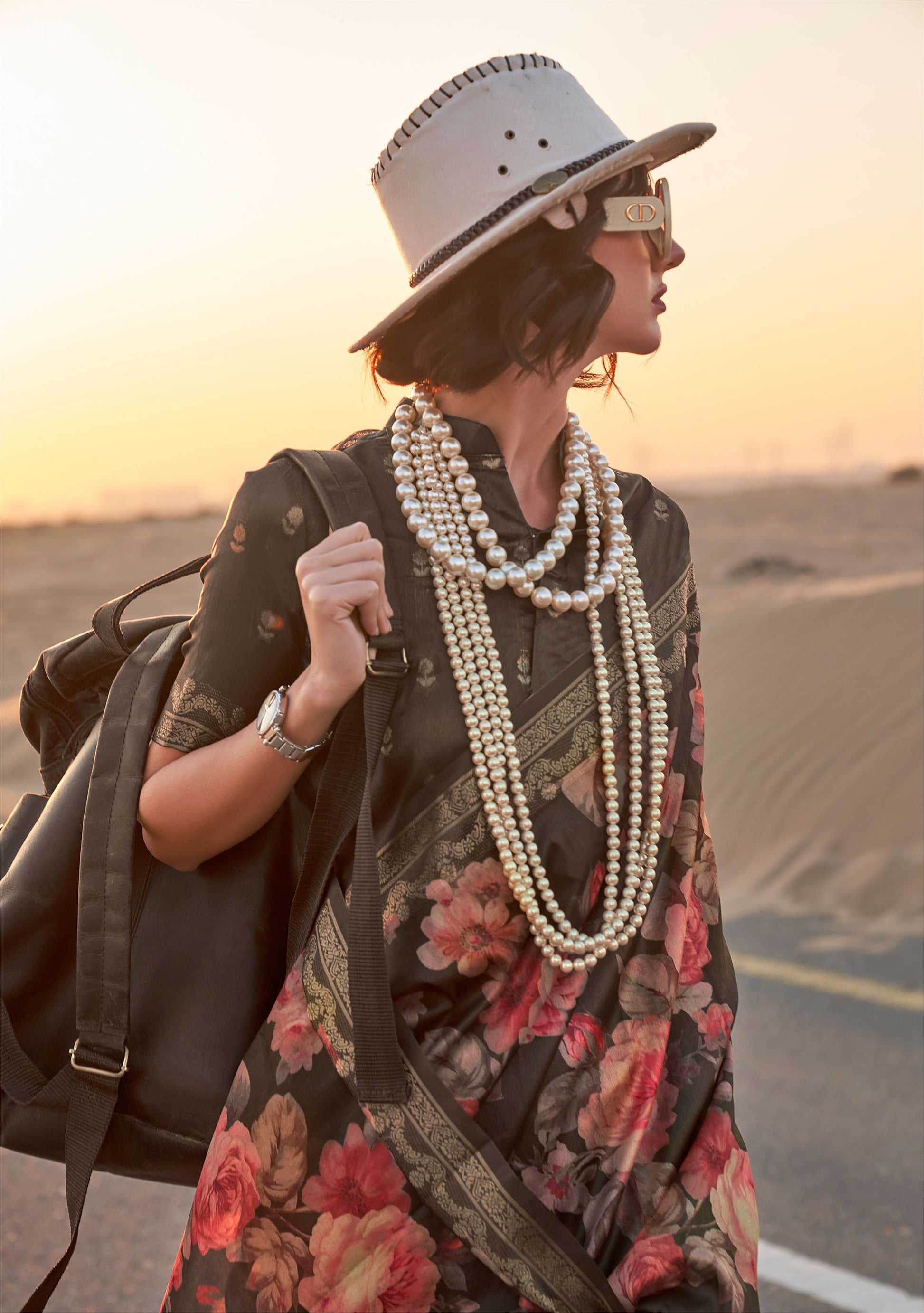 Does your wardrobe need more versatility? Then, check out this. Let your skin feel the refreshing touch as you adorn this superior-quality lightweight Saree to match the overall modest design.