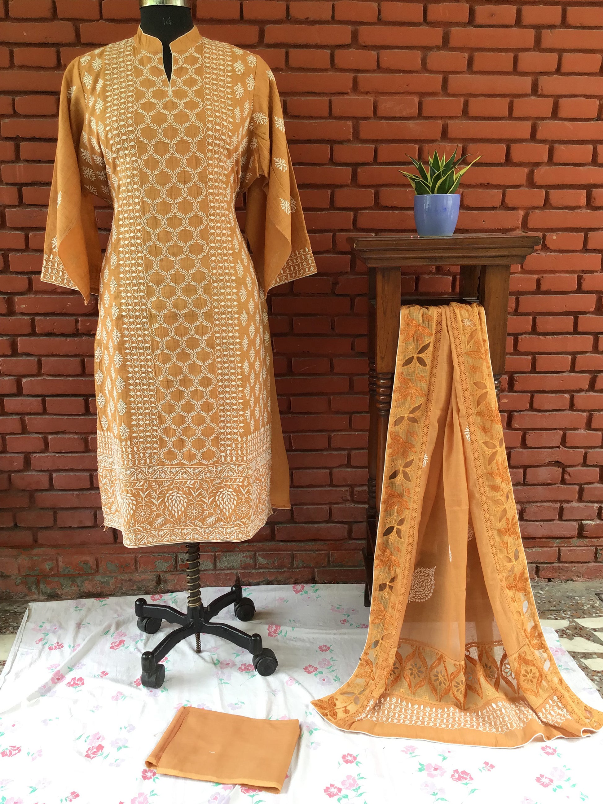 Brownish Baish Cotton Ghaspatti Pure Chikankari Salwar suit