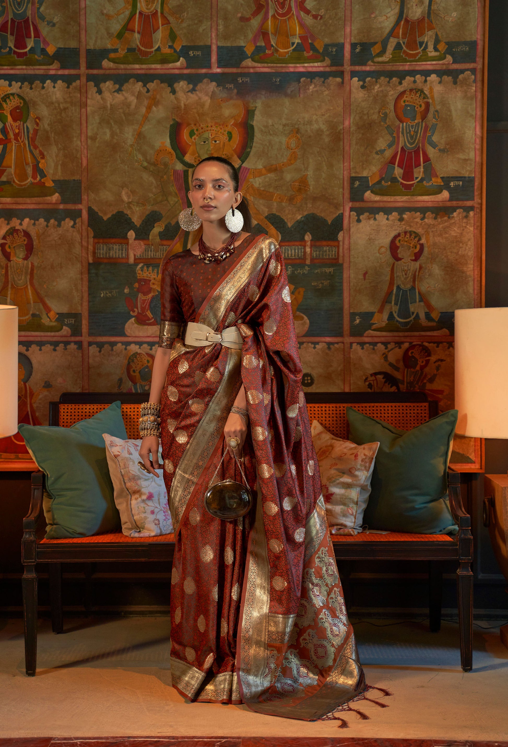 Burgundy Kona Pure Satin Tanchoi Handloom Silk Saree