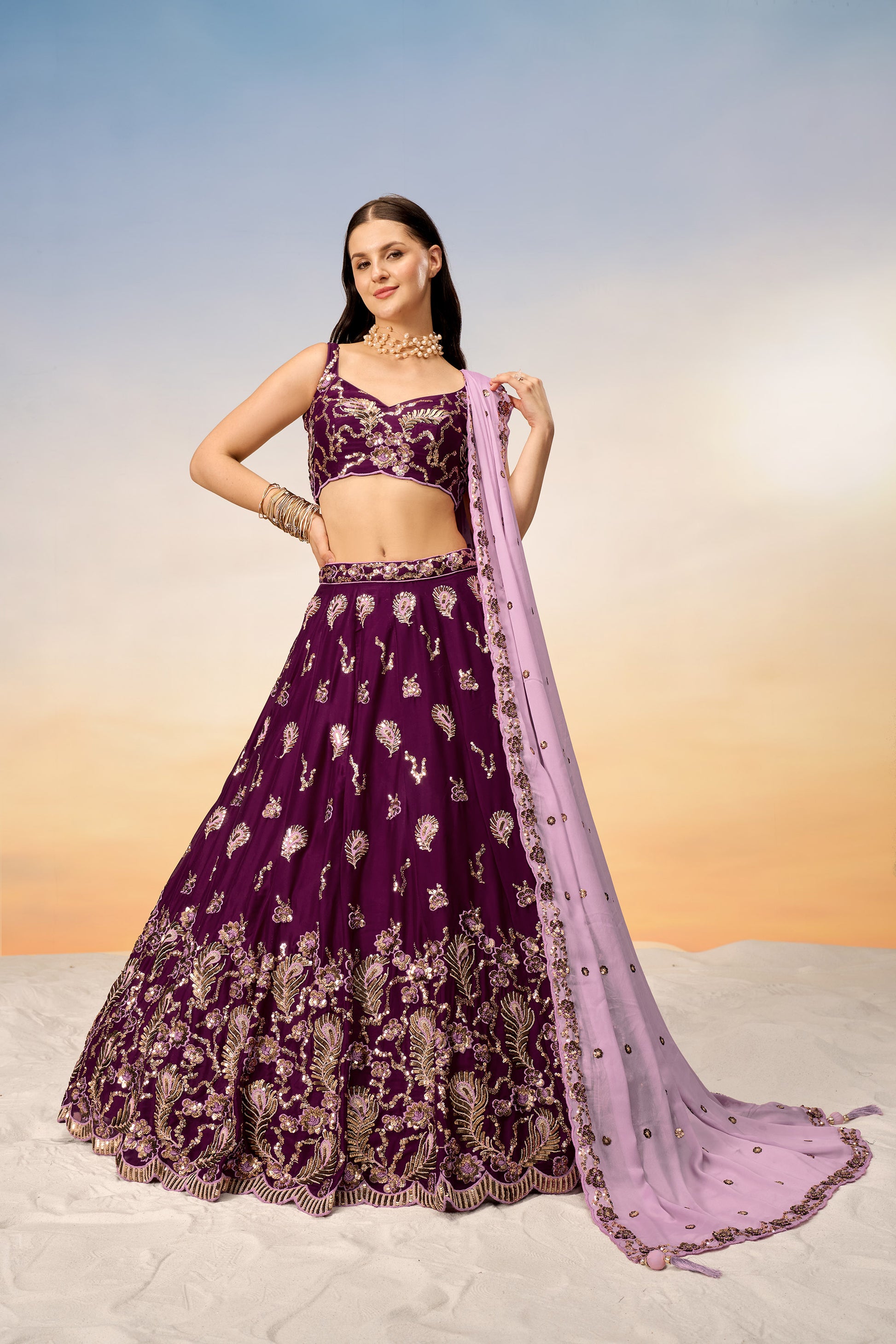 Burgundy Pure Georgette with heavy Sequins embroidery Lehenga Choli