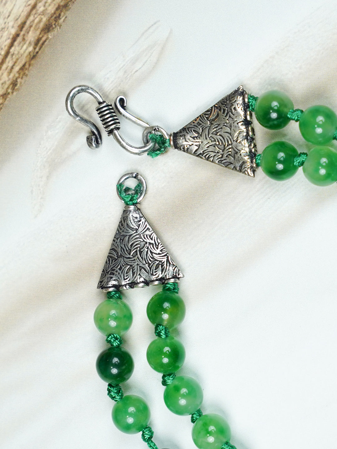 Zevar Club Yellow Green Orange Glossy Beads Double Layer Handcrafted Statement Necklace