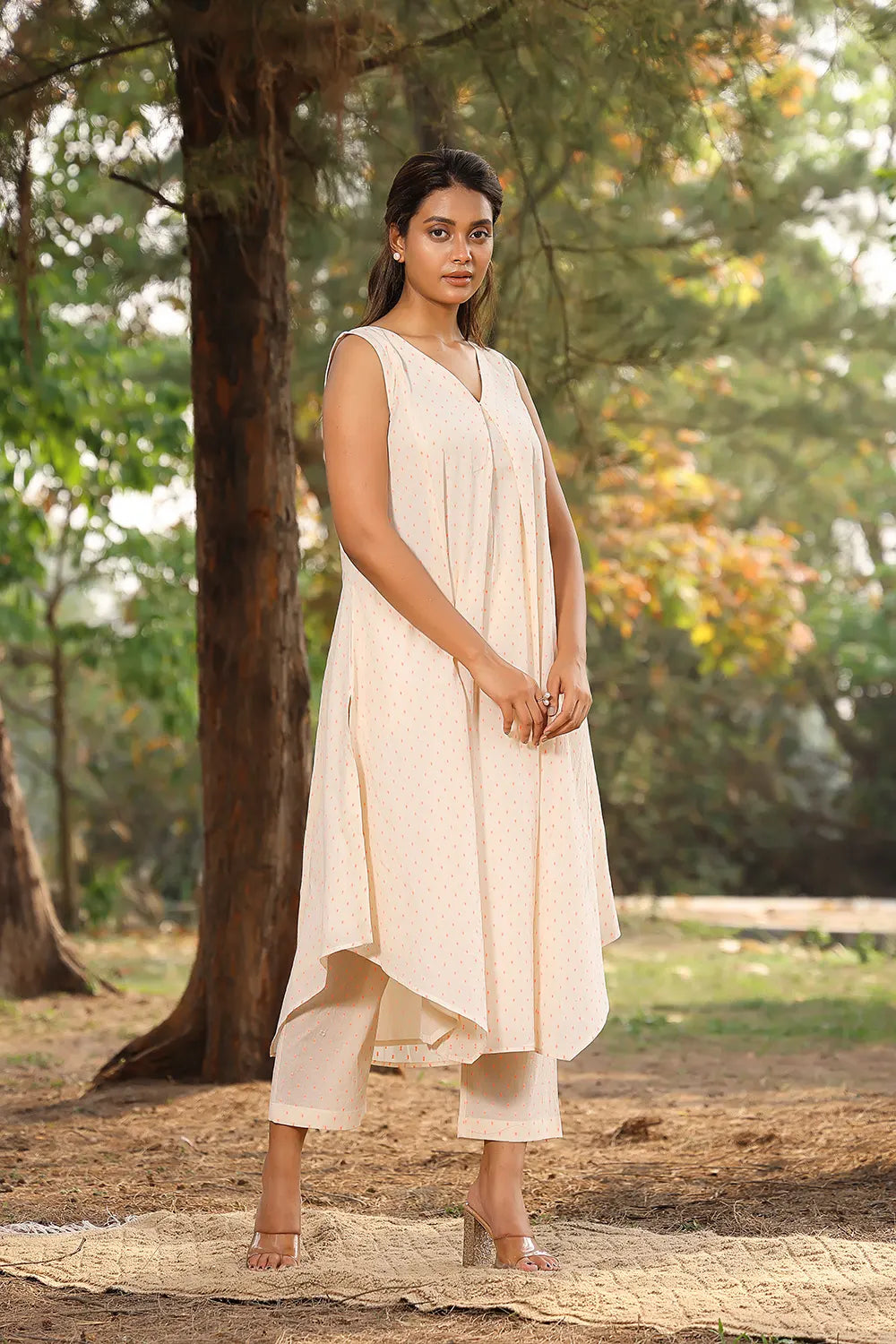 Cream Pure Cotton Orange Dots Co-ord-Set