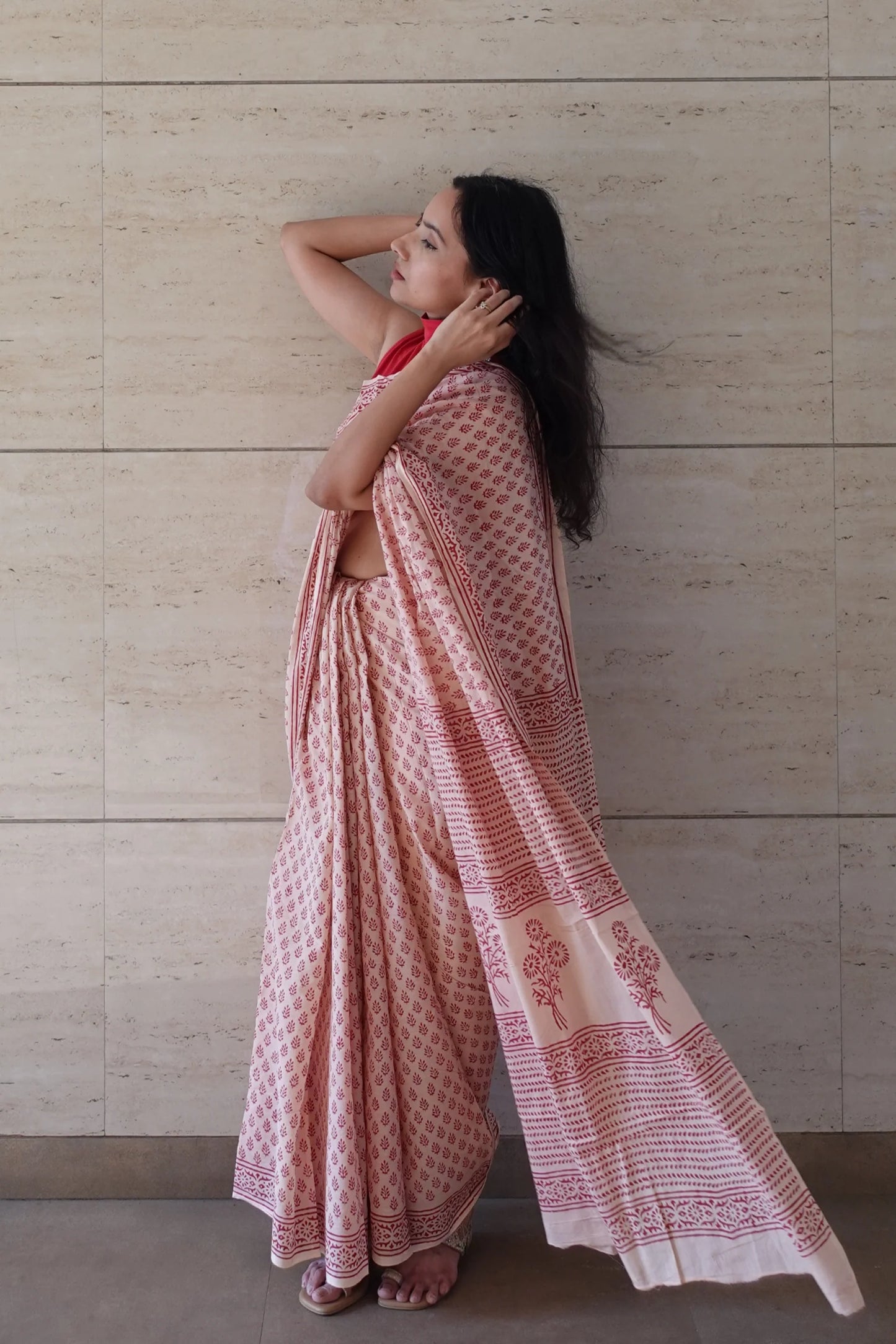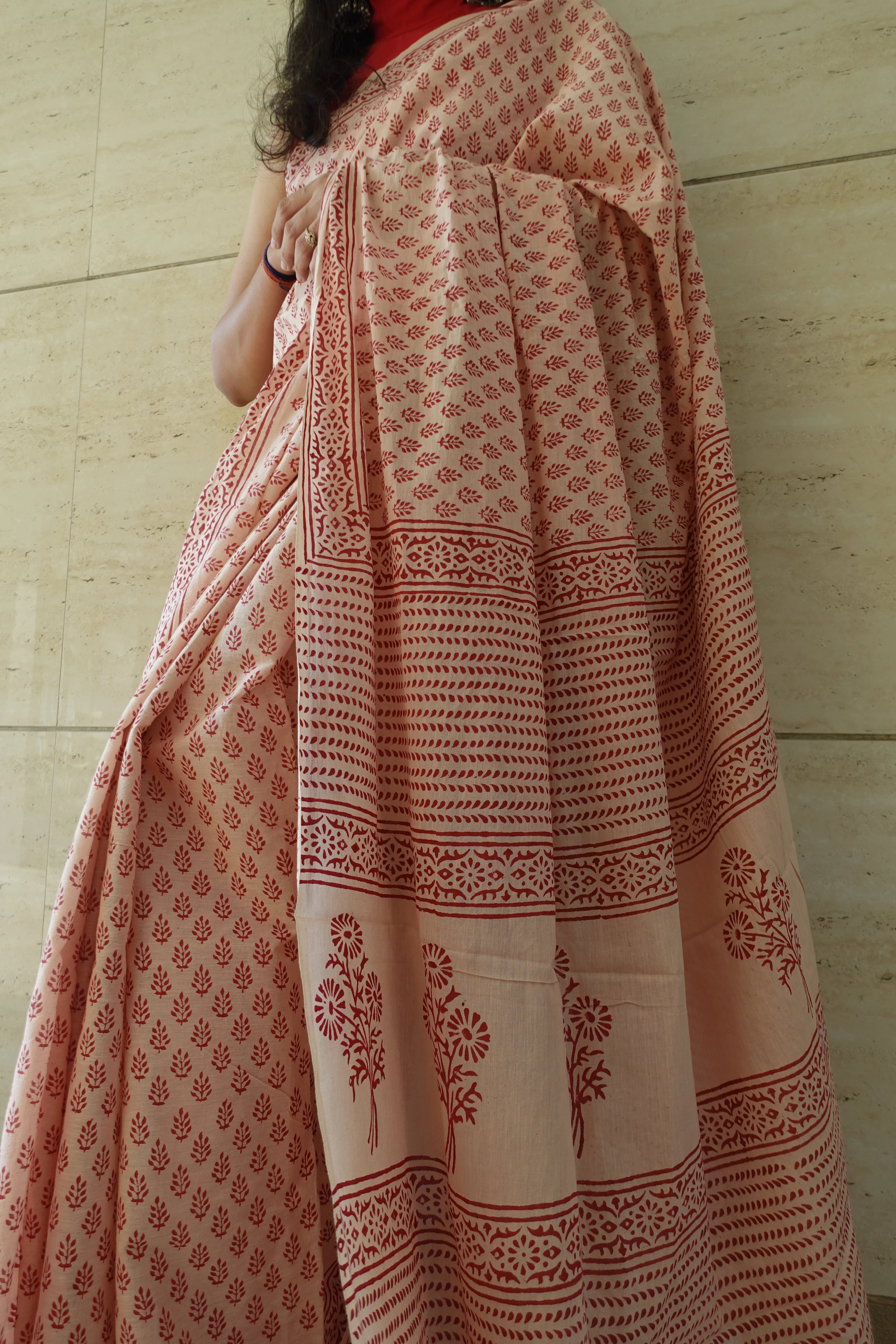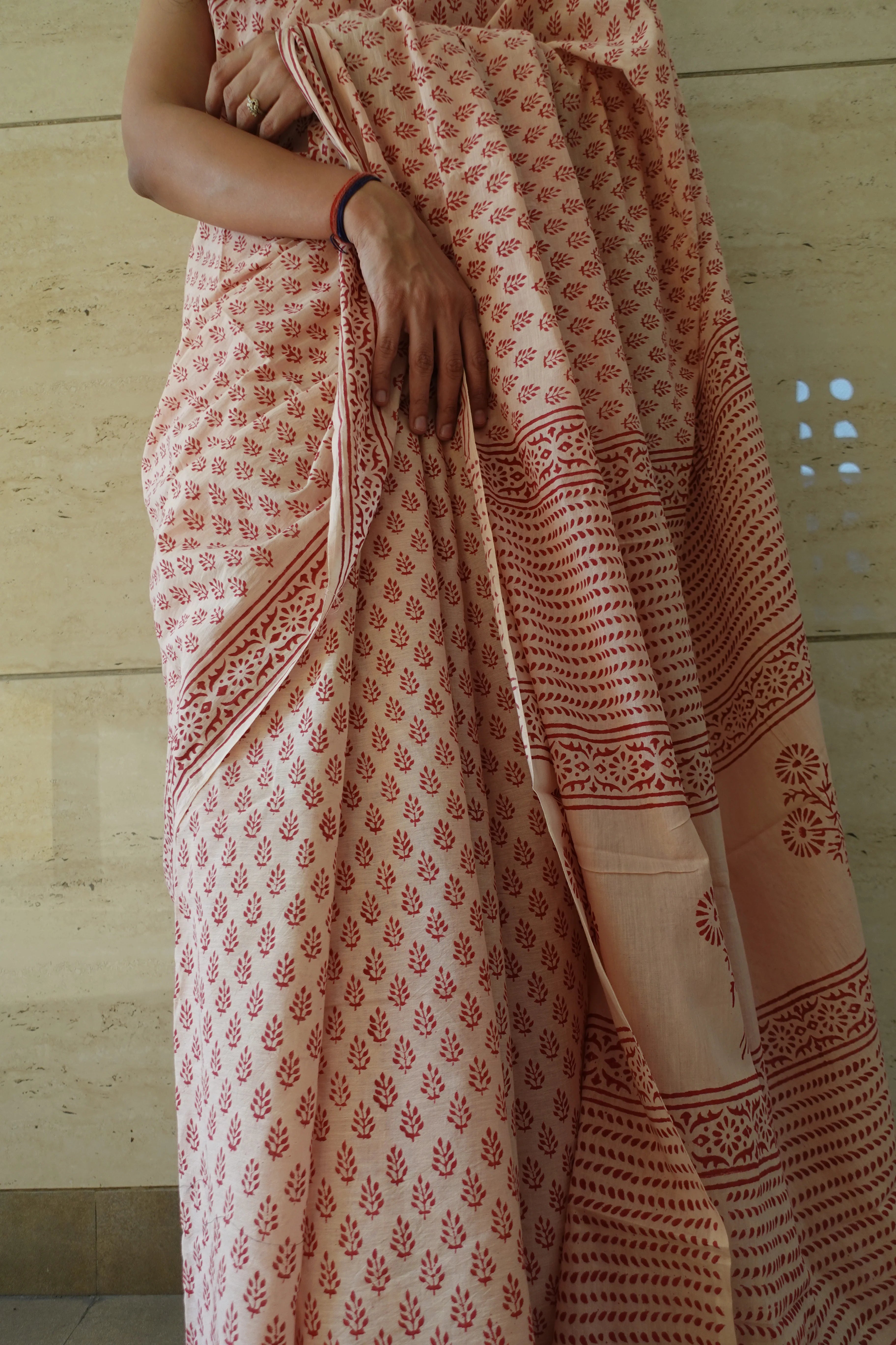 Earthy Essence Saree Handblock Print Natural Dyed - BeigeMulmul Cotton Saree