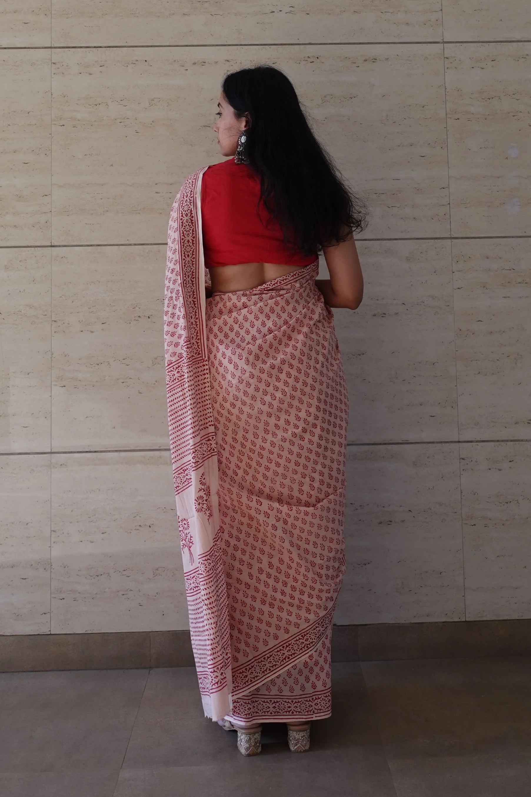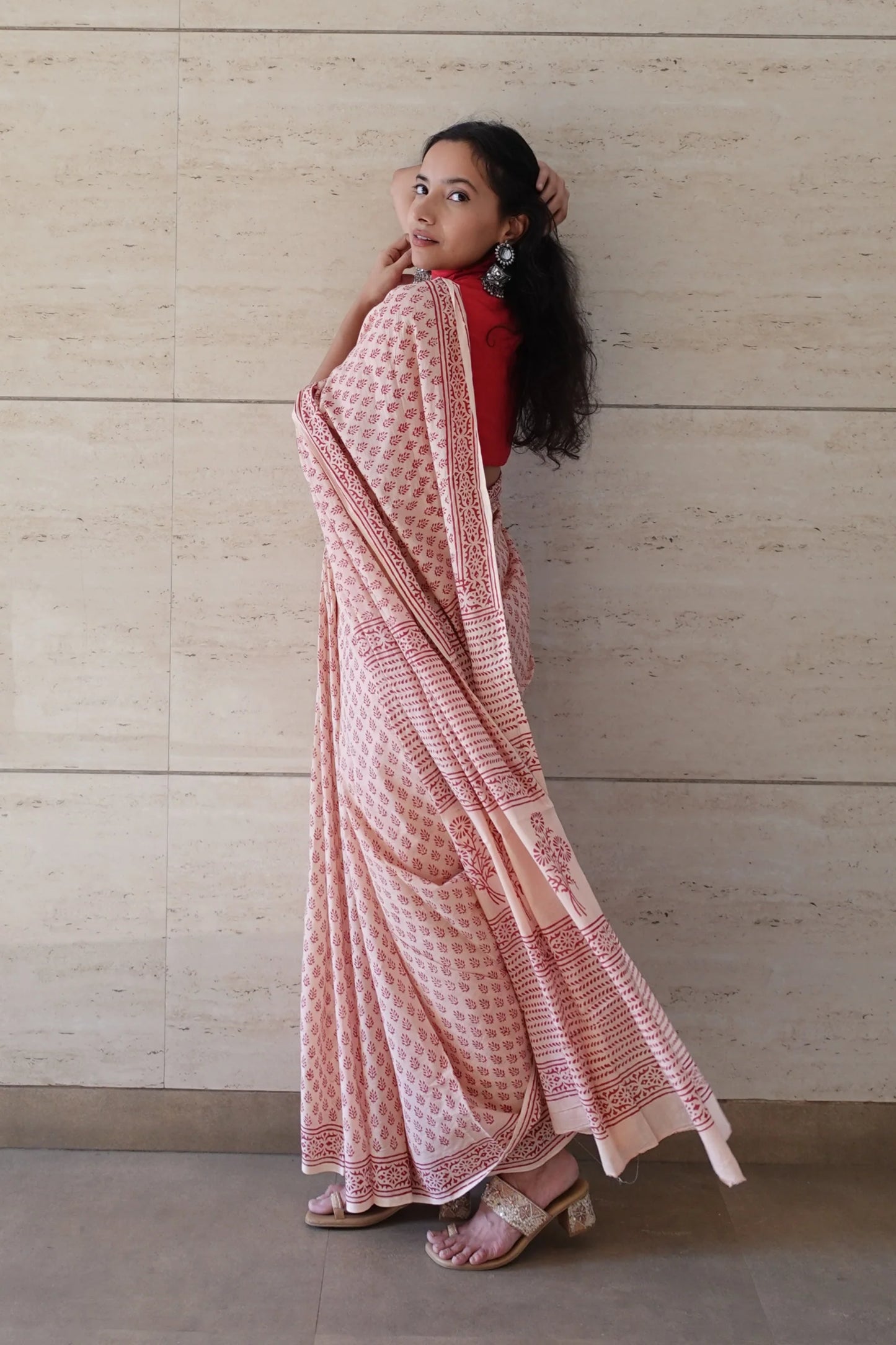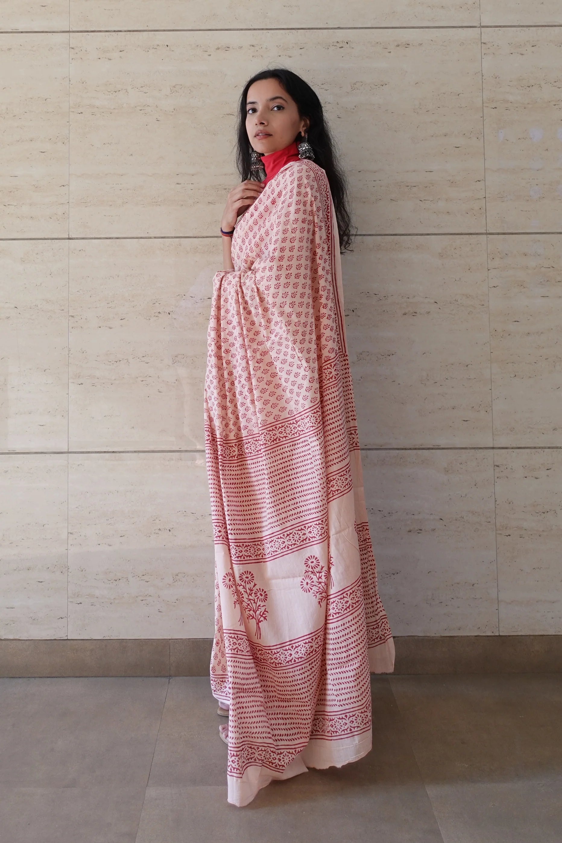 Earthy Essence Saree Handblock Print Natural Dyed - BeigeMulmul Cotton Saree