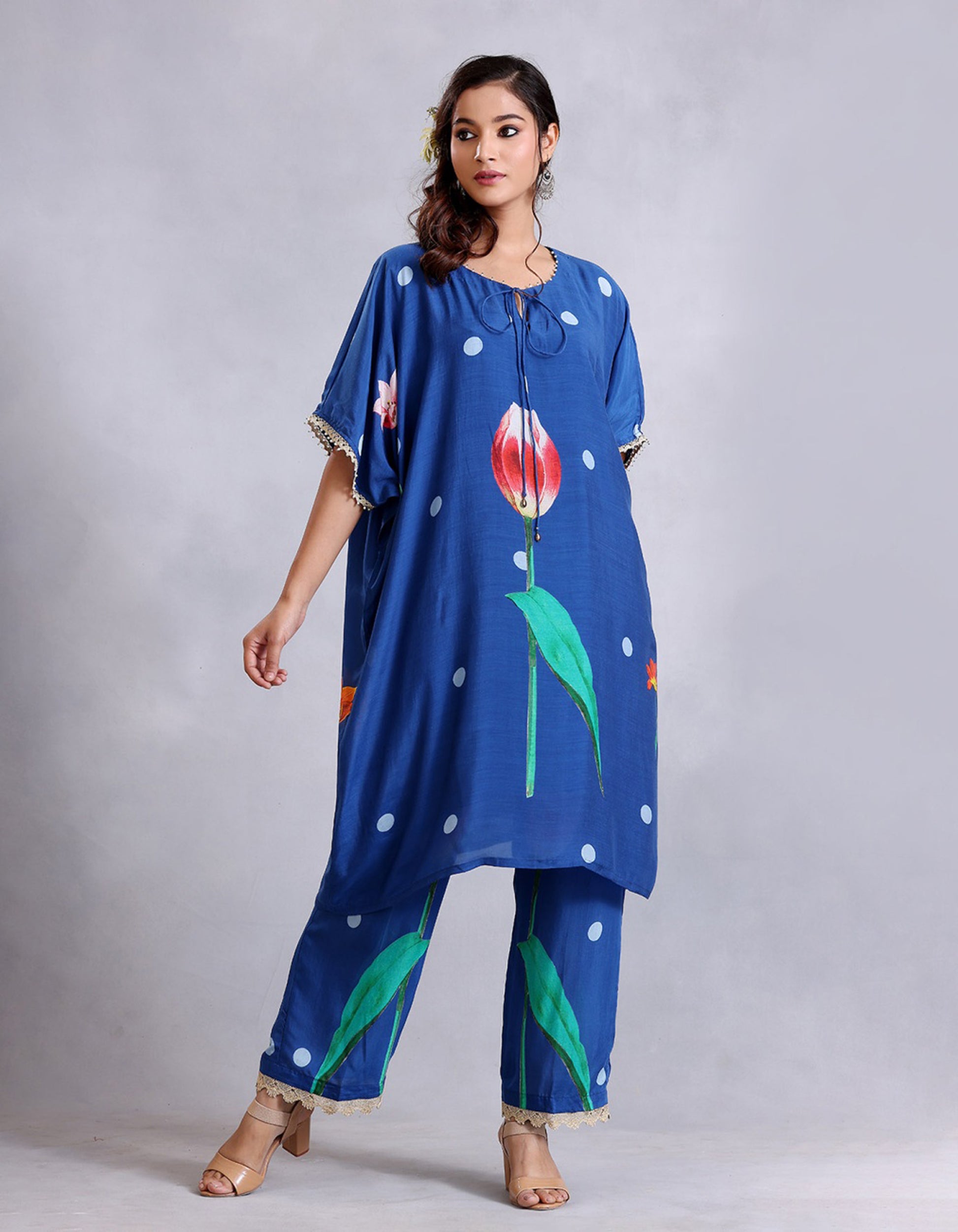 Electric Blue anti fit kurta with edging detail. It comes with a straight pant.