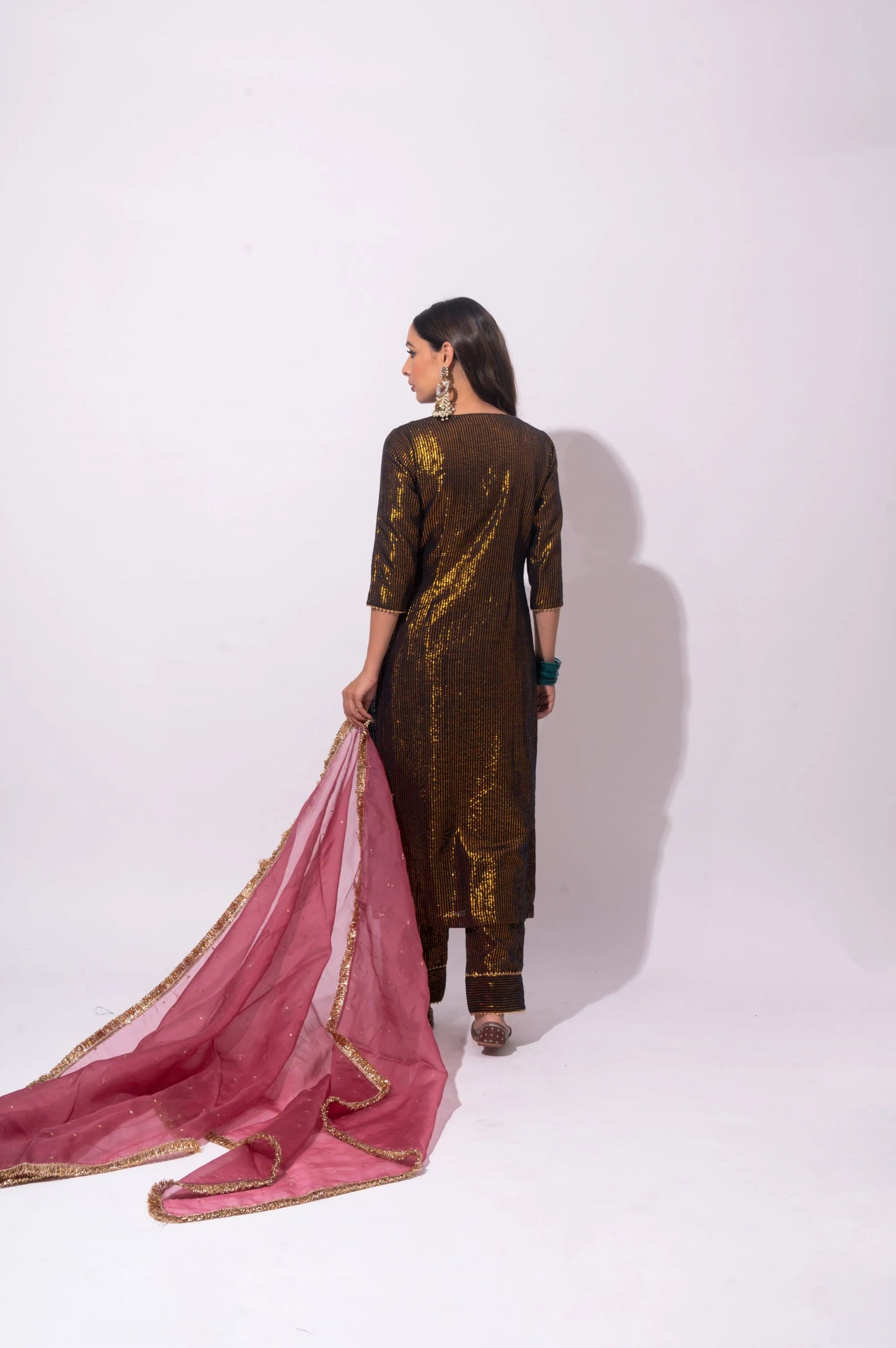 FABRIC USED : kurta & pant cotton gold zari, Dupatta is in organza, Kurta set has all over cotton lining.
