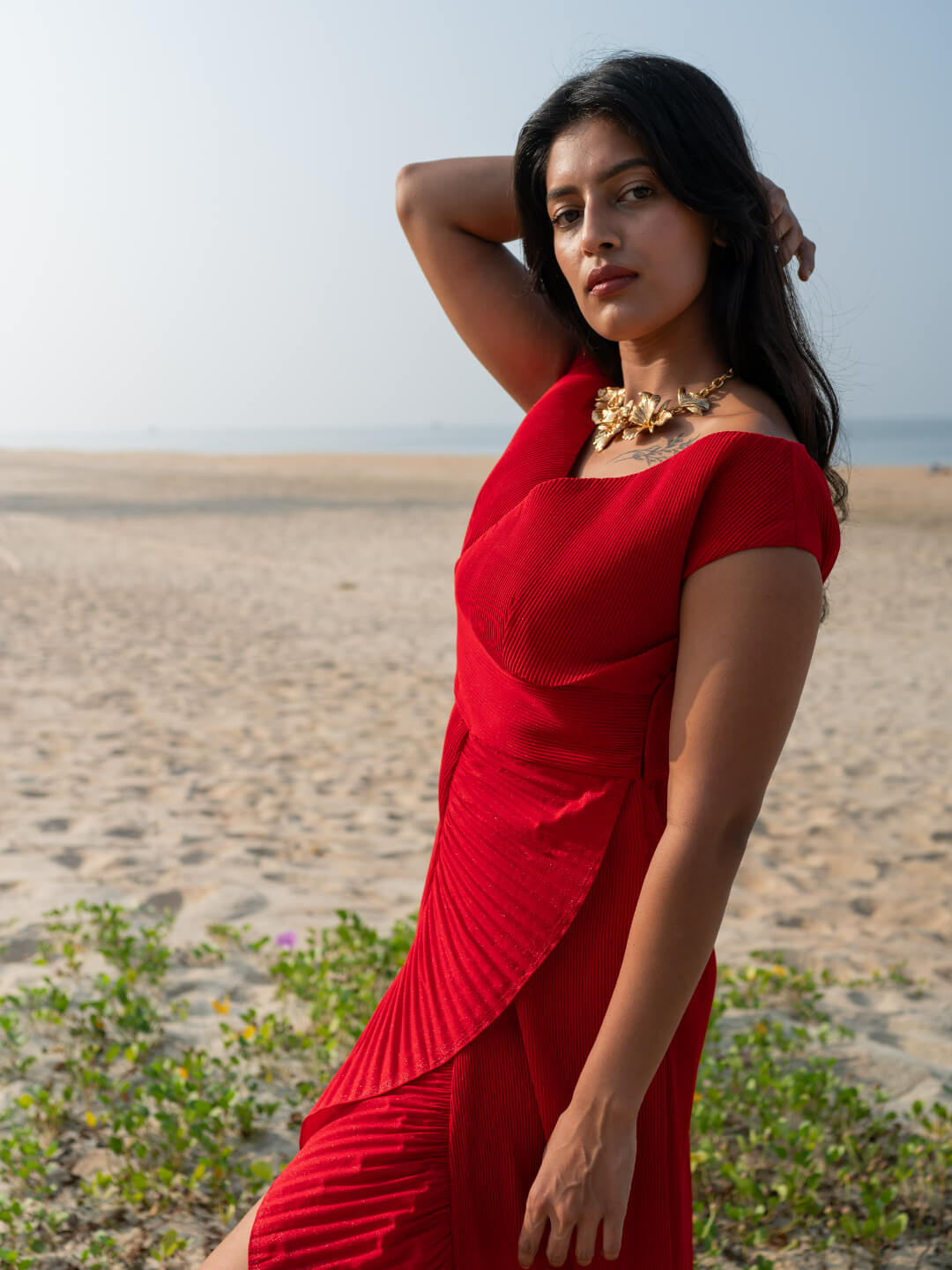 This Forever Crush Gown features delicate light pleats that effortlessly sway with your every move. Be the center of attention at parties, gatherings, or urban galas as you soak in the shimmering joy of this radiant outfit.