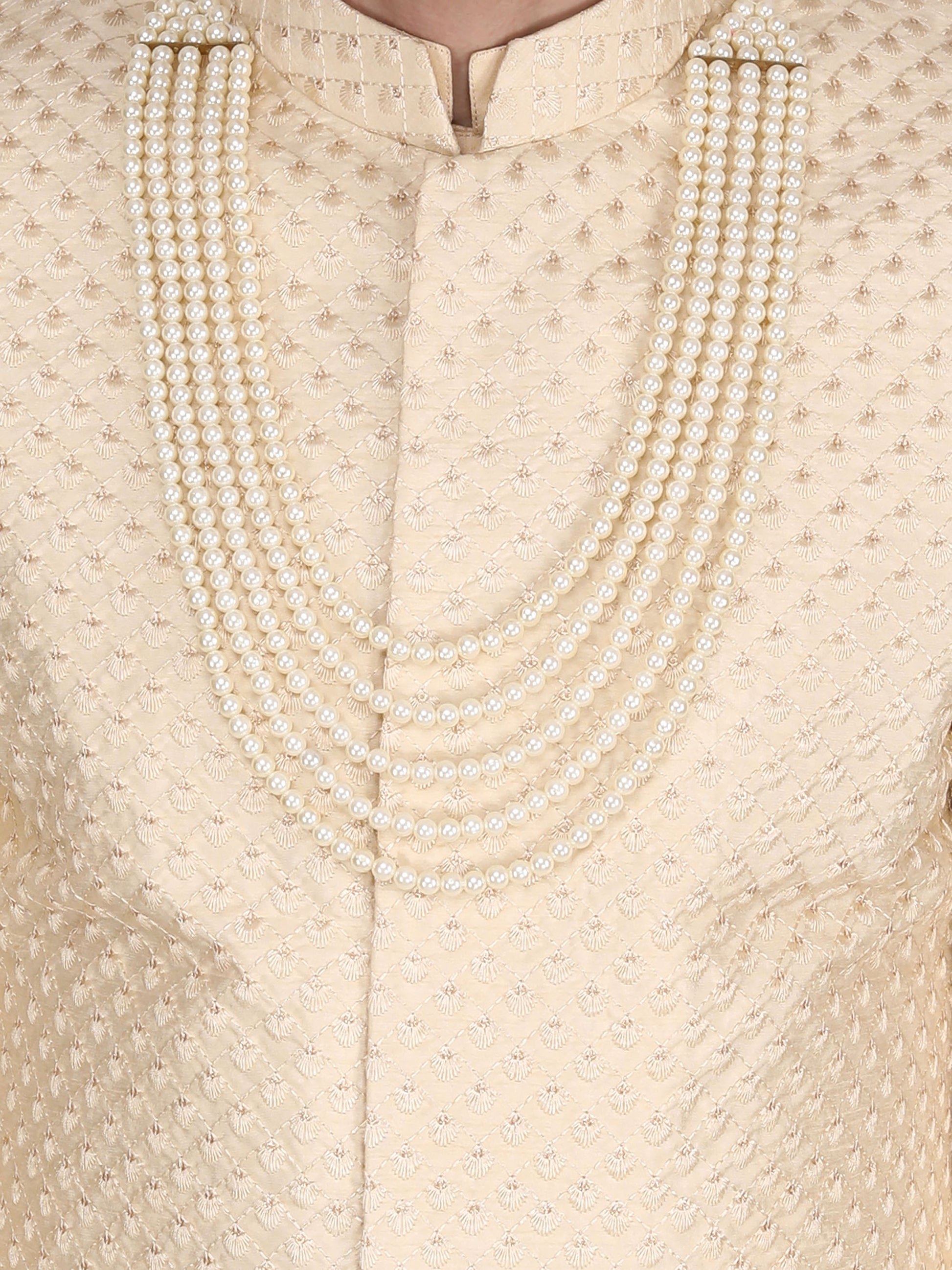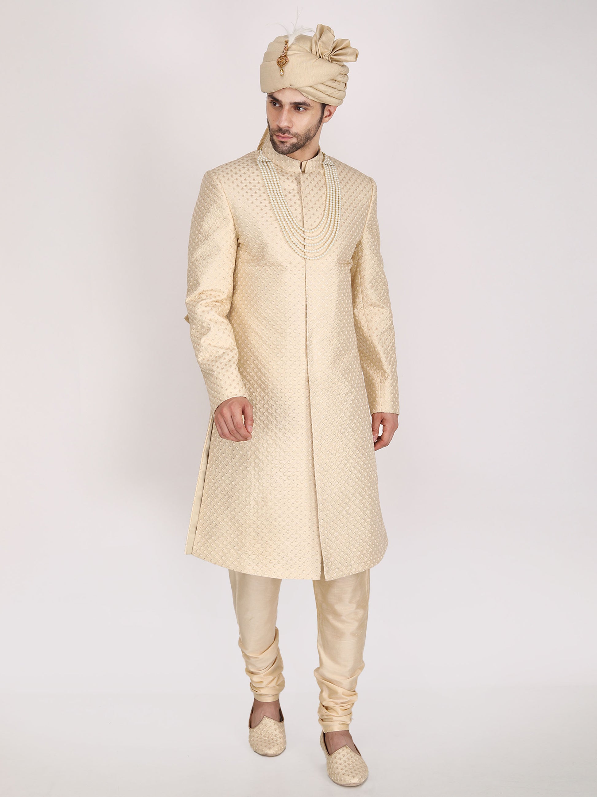 Gold Colored Art Silk hand embroidered Sherwani Set