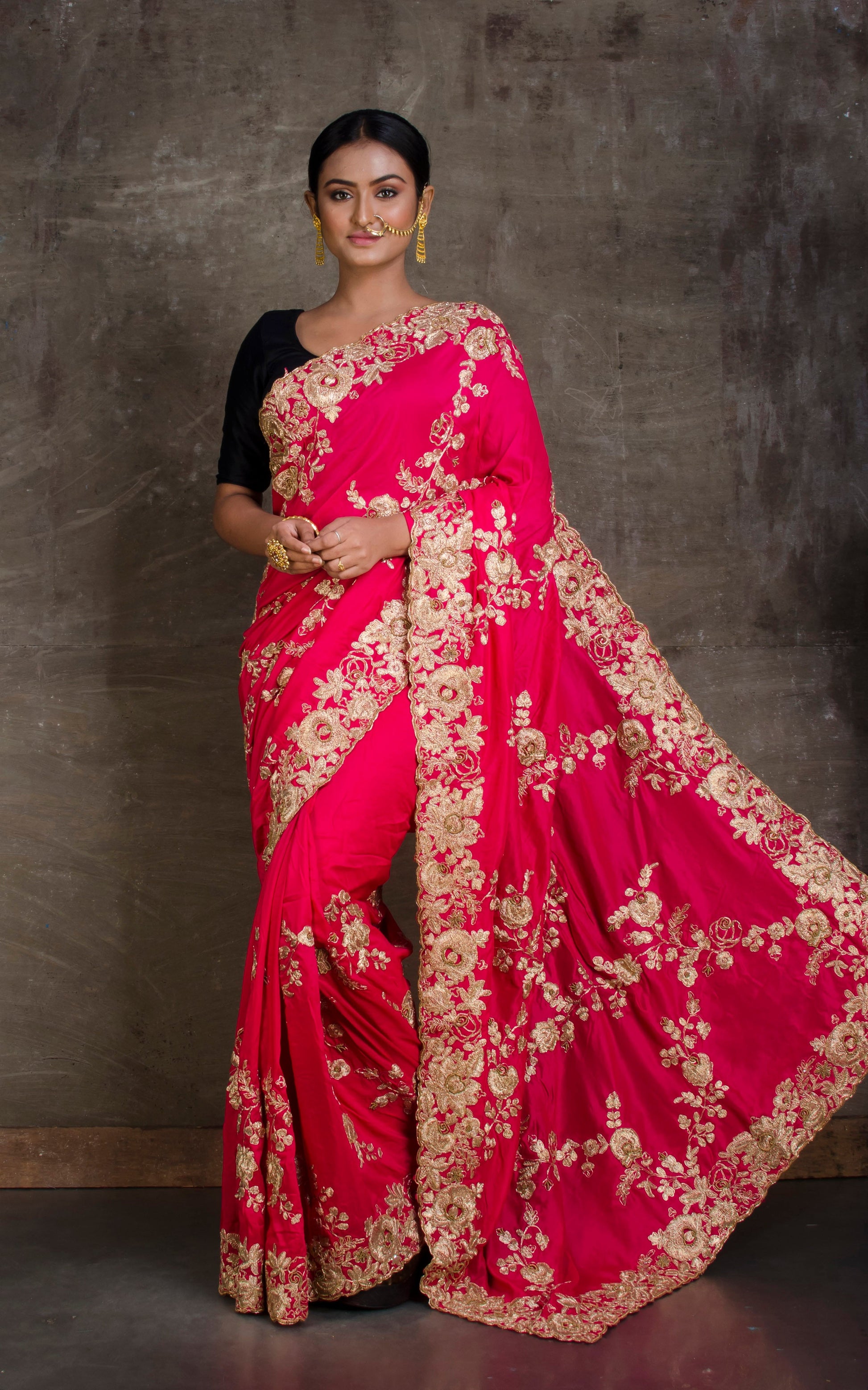 Gold Gota Work Silk Zardosi in Rubine Red and Antique Gold