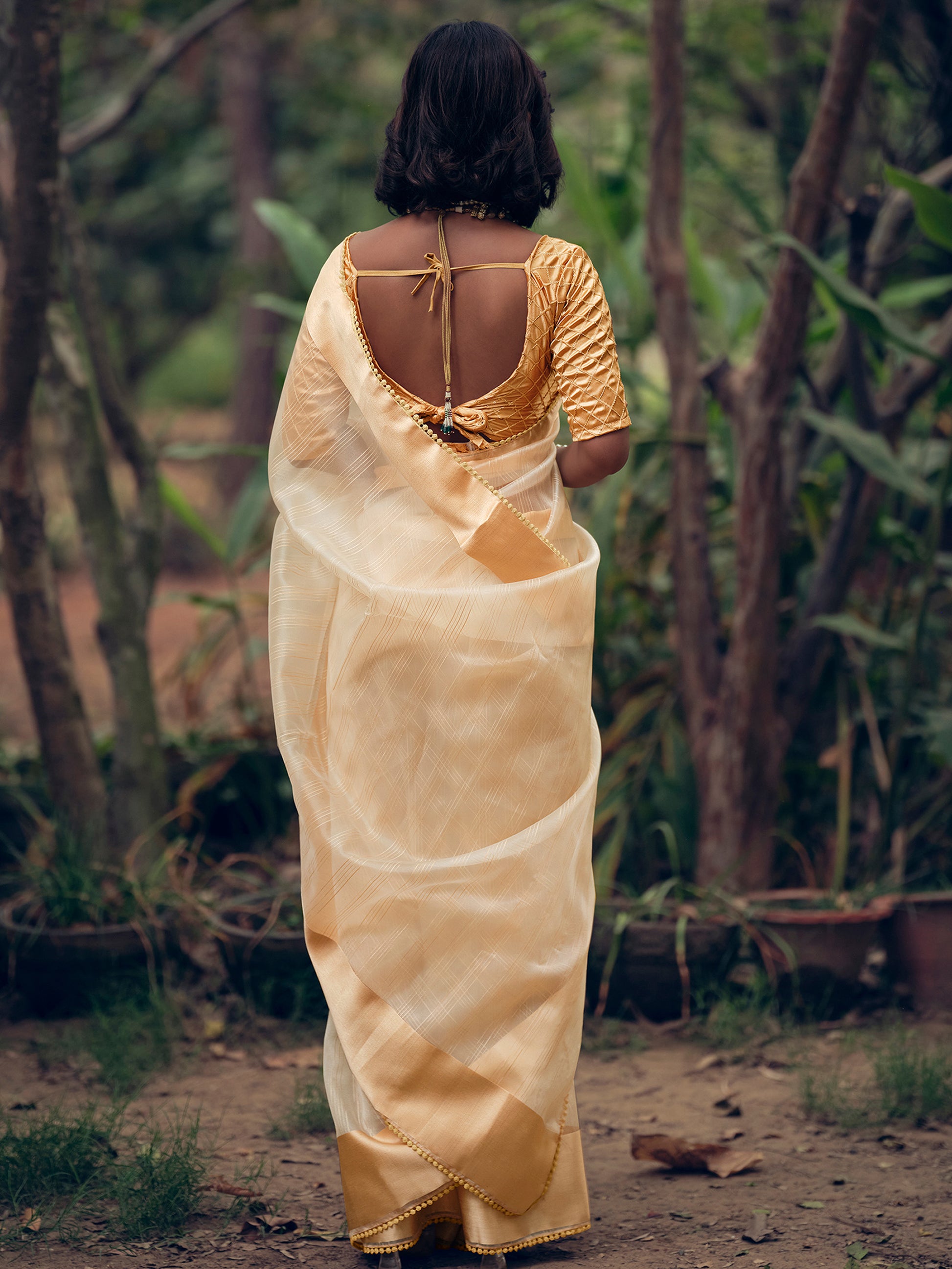 Gold Organza Woven Saree