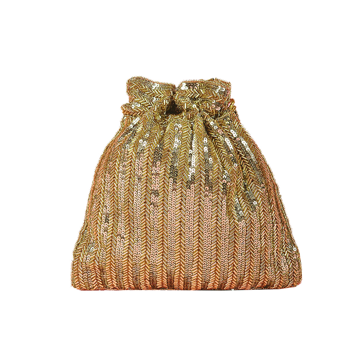 Gold Sequins Hand Embroidered Potli with Gold Chain Handle