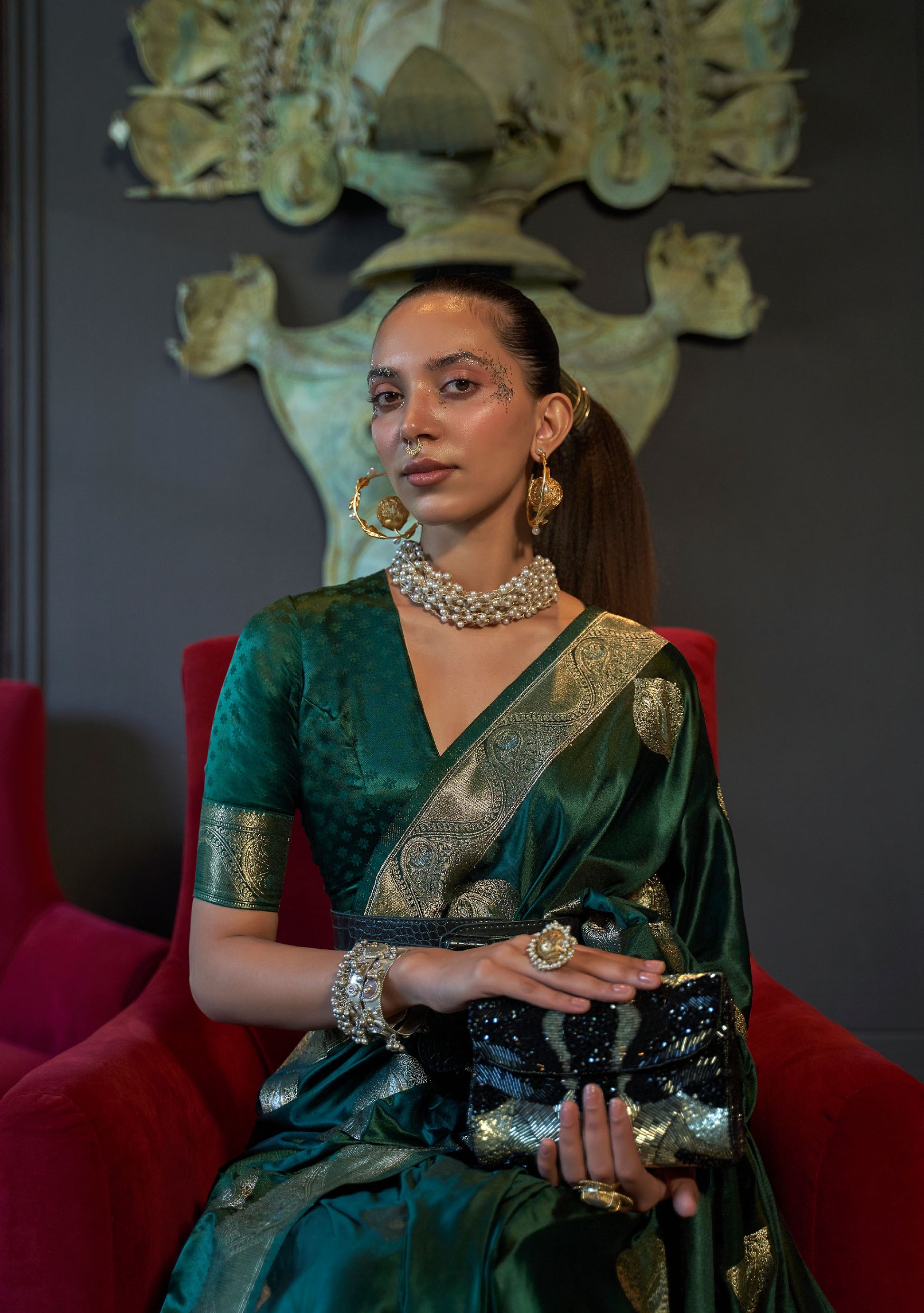 Green Kelsey Nylon Pure Satin Handloom Saree