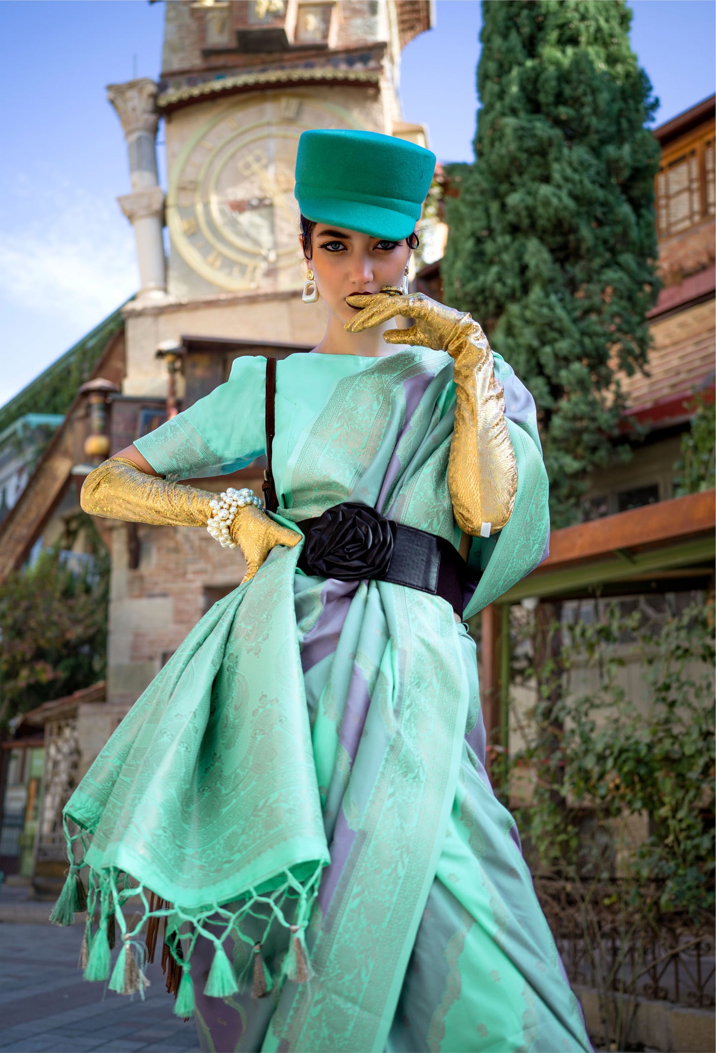 Green Kimbus Katan Silk Rangkaat Handloom Saree