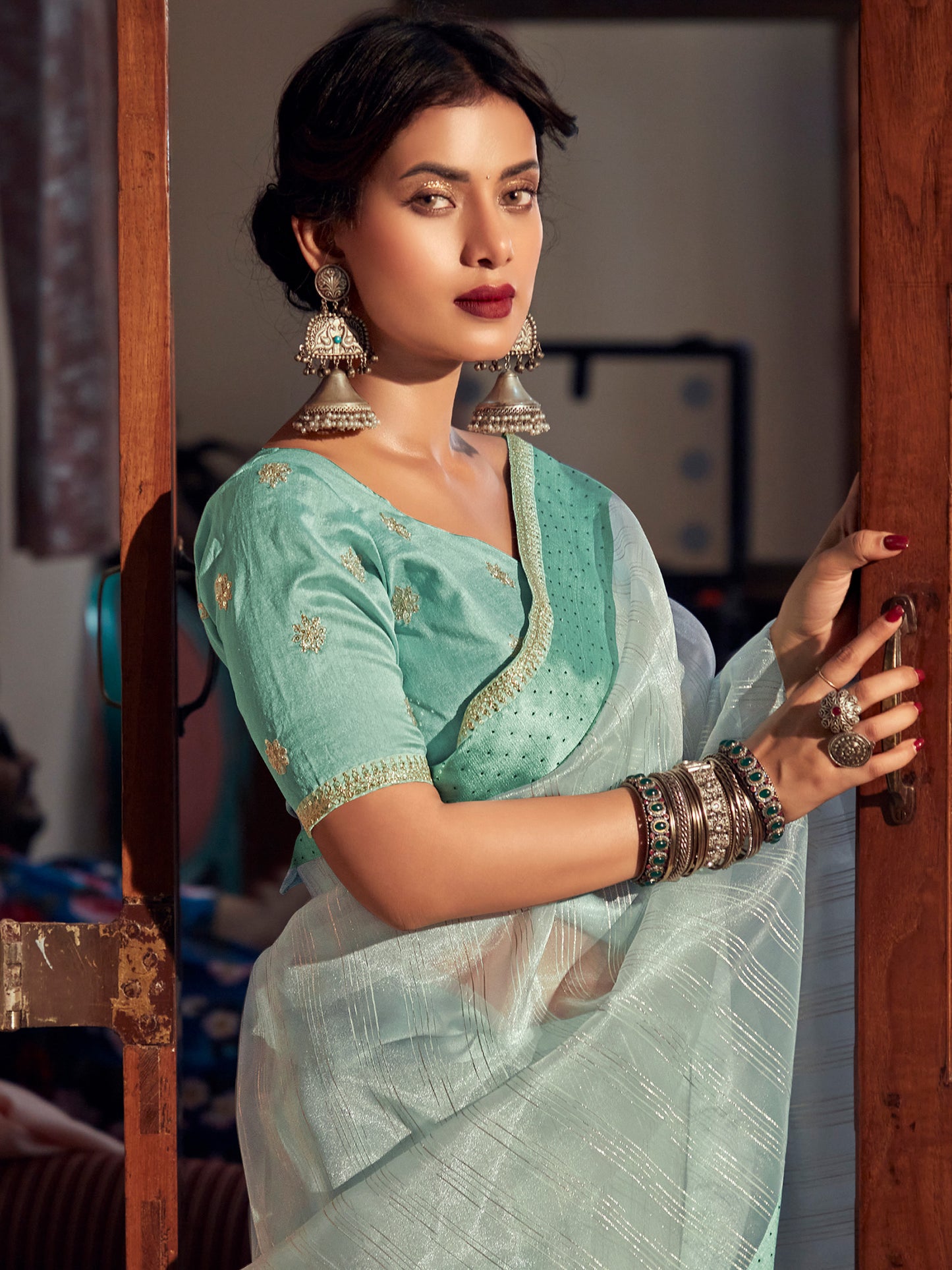 Green Organza Woven Style Saree