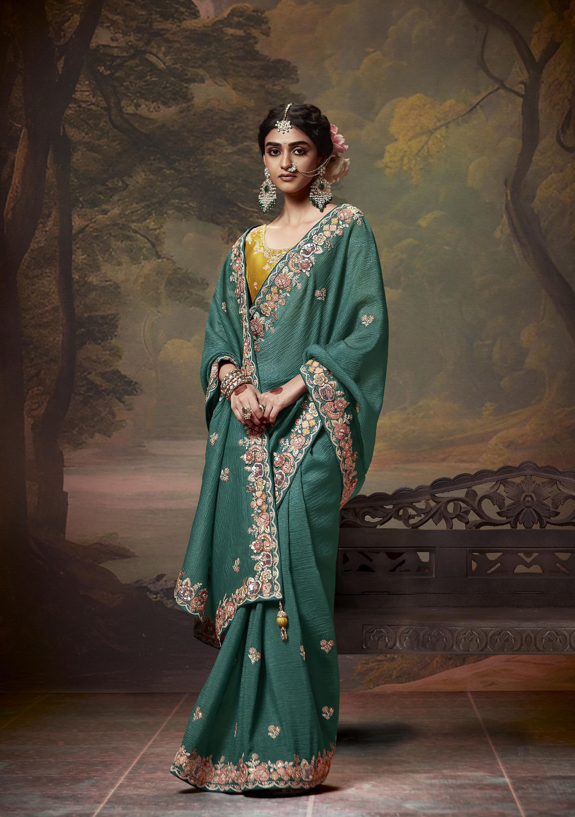 Green Sequins Festive Naveli Saree