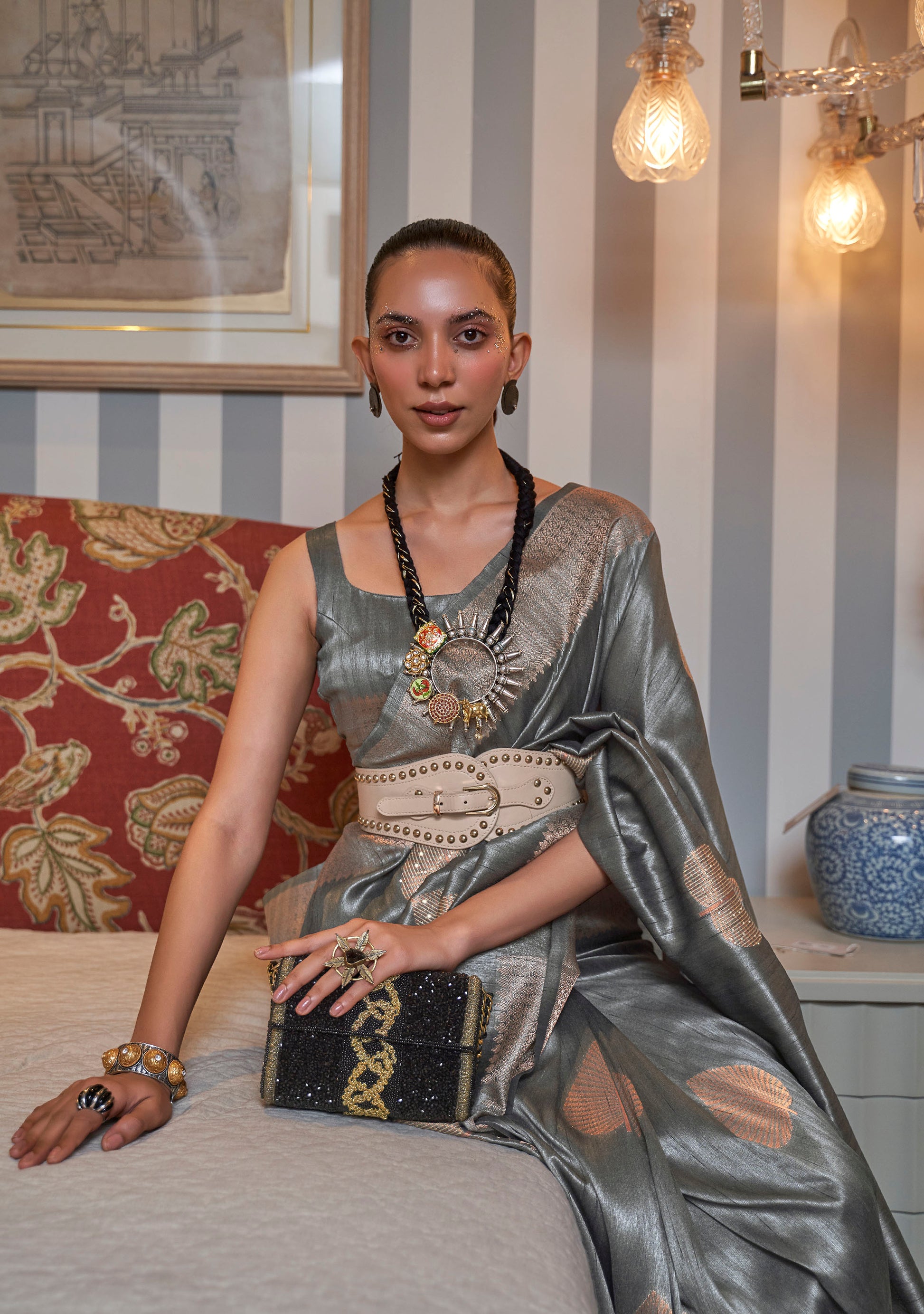 Grey Banarasi Silk Zari Woven Saree