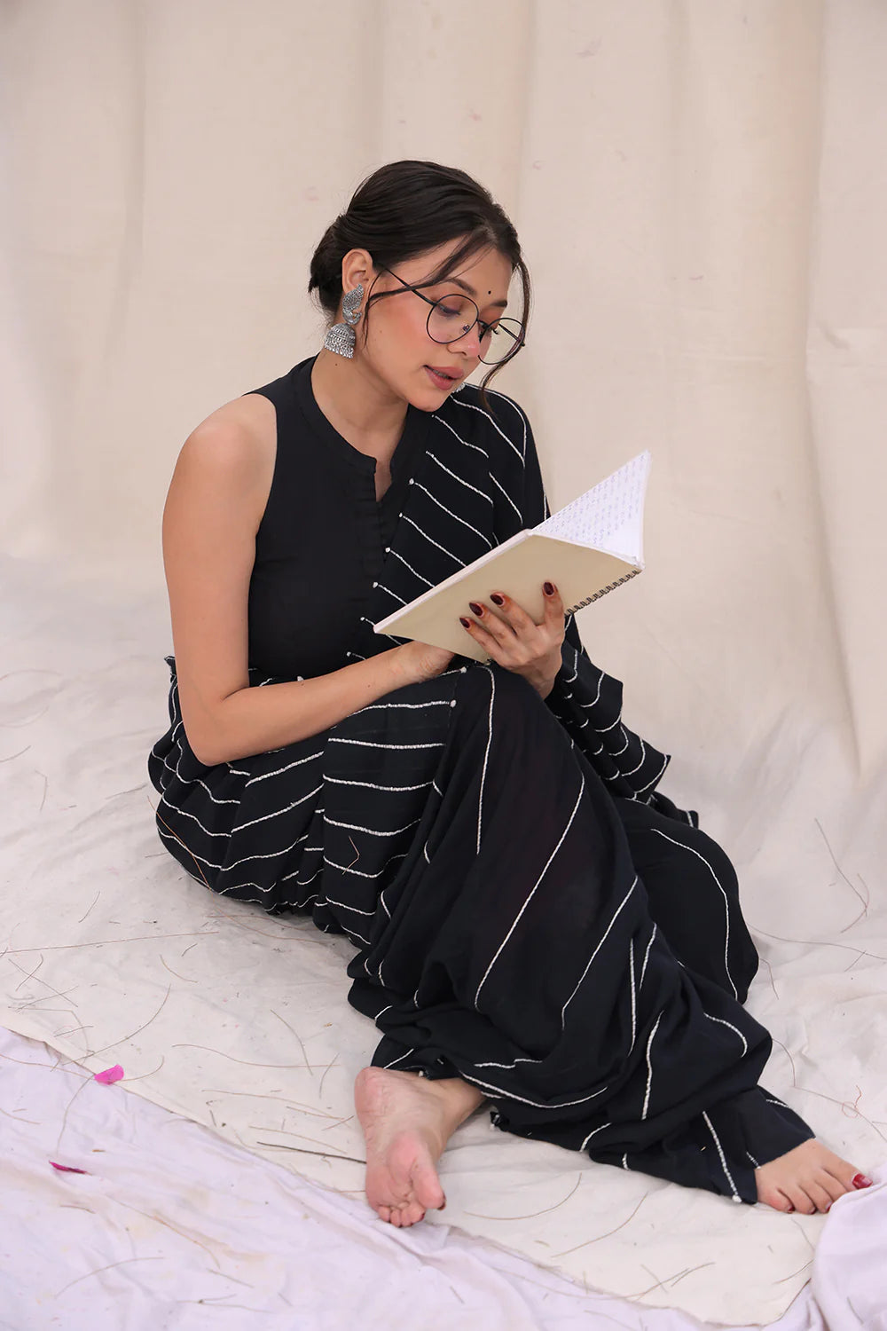 Elevate your style with our Handloom Black Pure Cotton Stripes Jamdani Saree, crafted from the finest pure cotton. Adorned with delicate white motifs woven into the pallu, this saree blends tradition with elegance. Lightweight and breathable, it’s perfect for effortless grace, whether for everyday wear or special occasions.