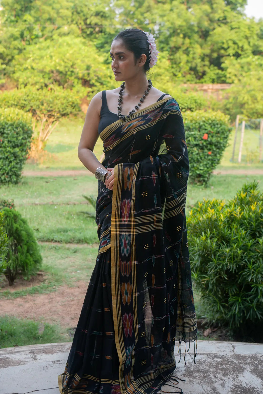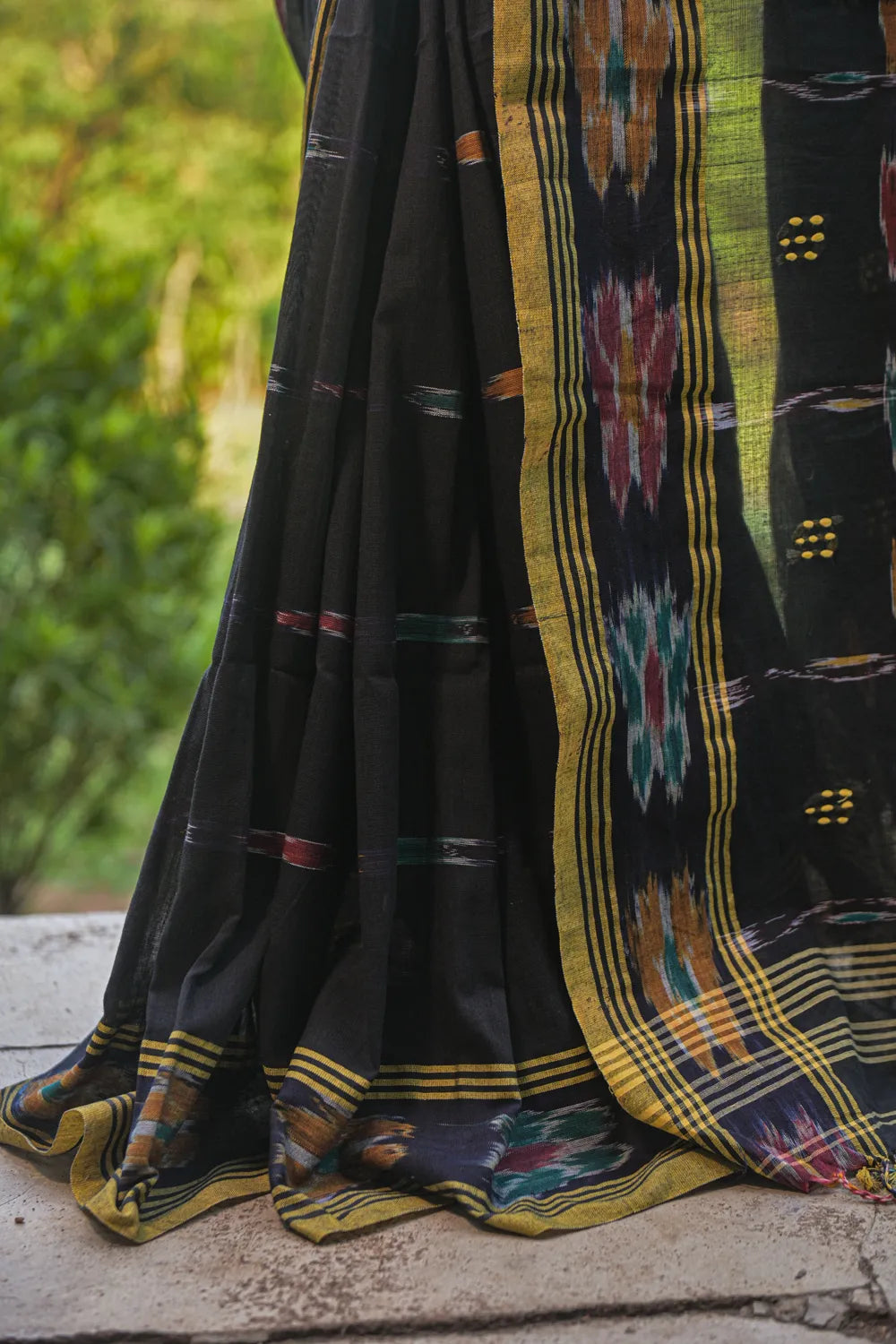 Handloom Black Pure Cotton Saree with Ikkat Border
