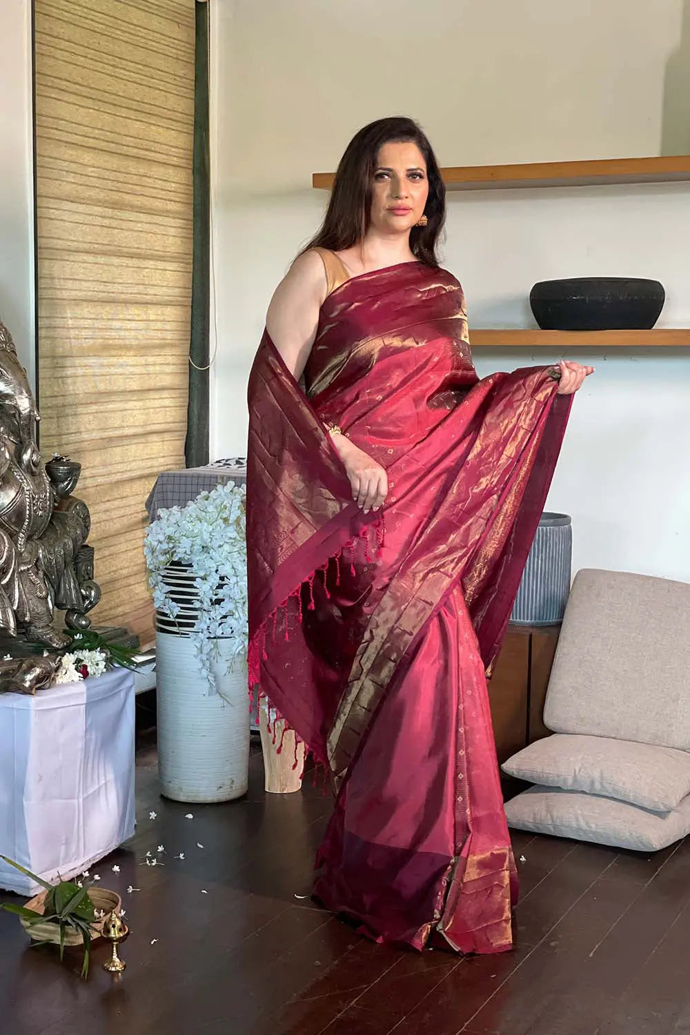 Handloom Maroon Pure Silk Kanchipattu Saree