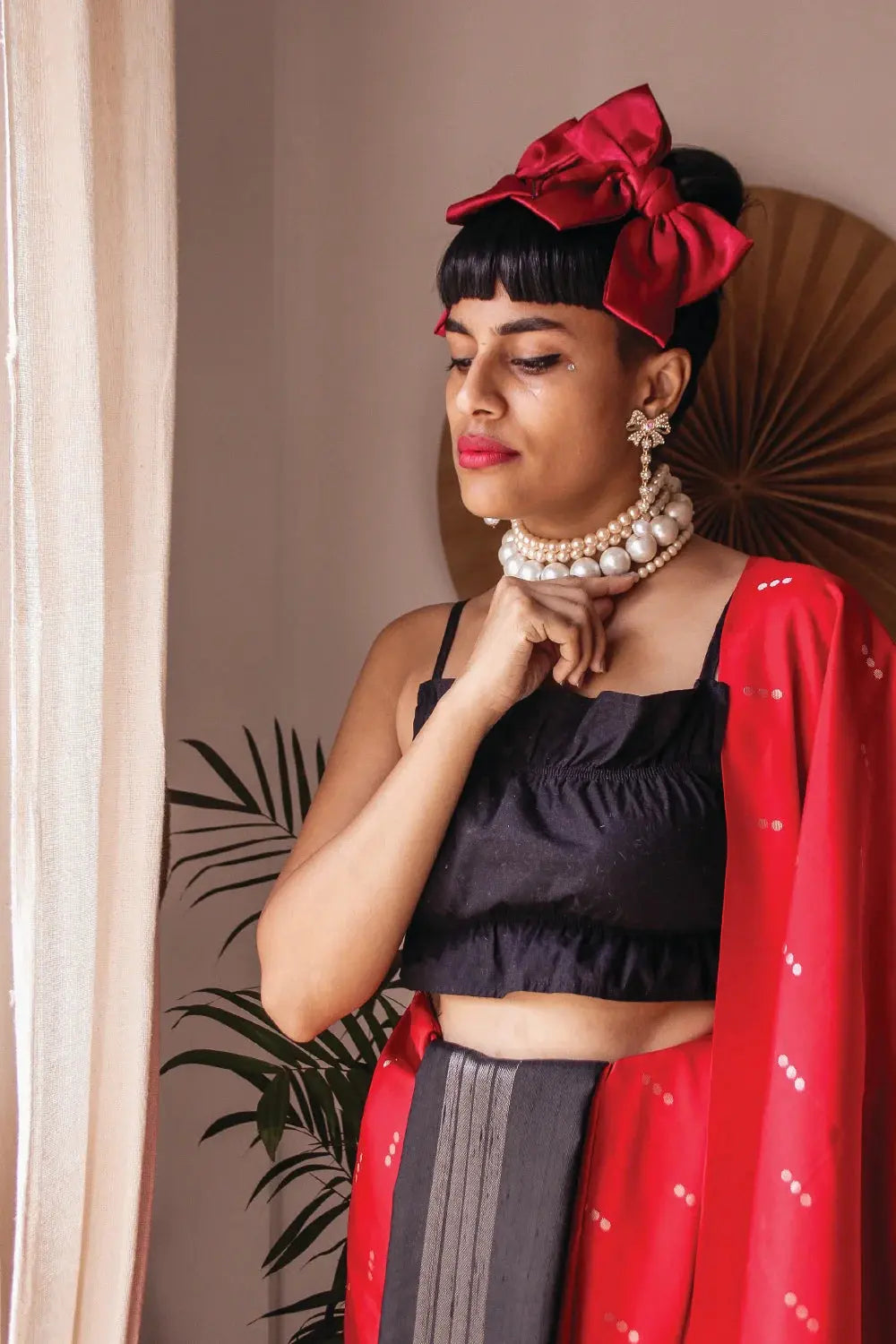 Handloom Red & Black Pure Silk Contemporary Kanchipattu Saree