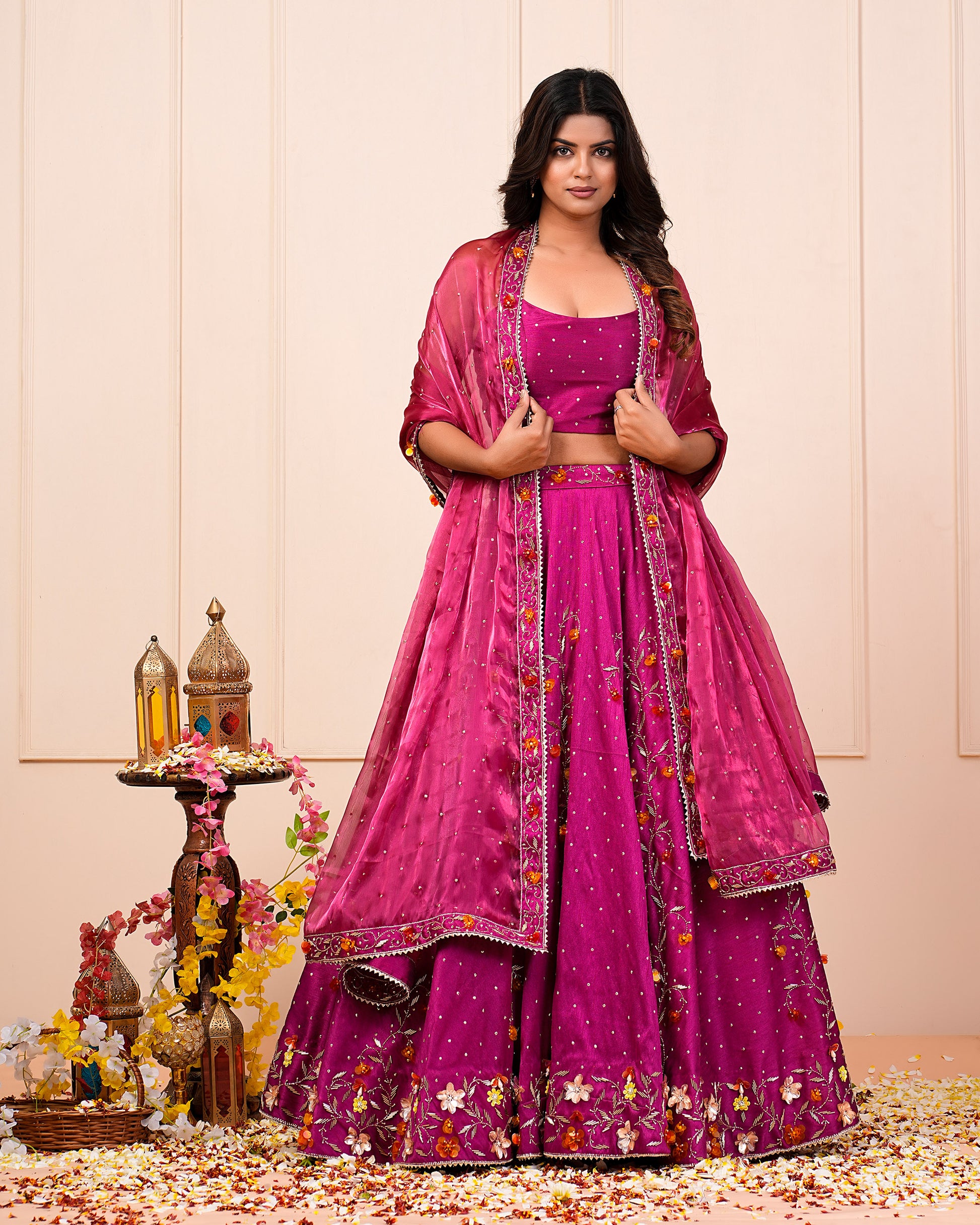 Heavy Handwork Rosa Rosario Lehenga Choli With Dupatta Set