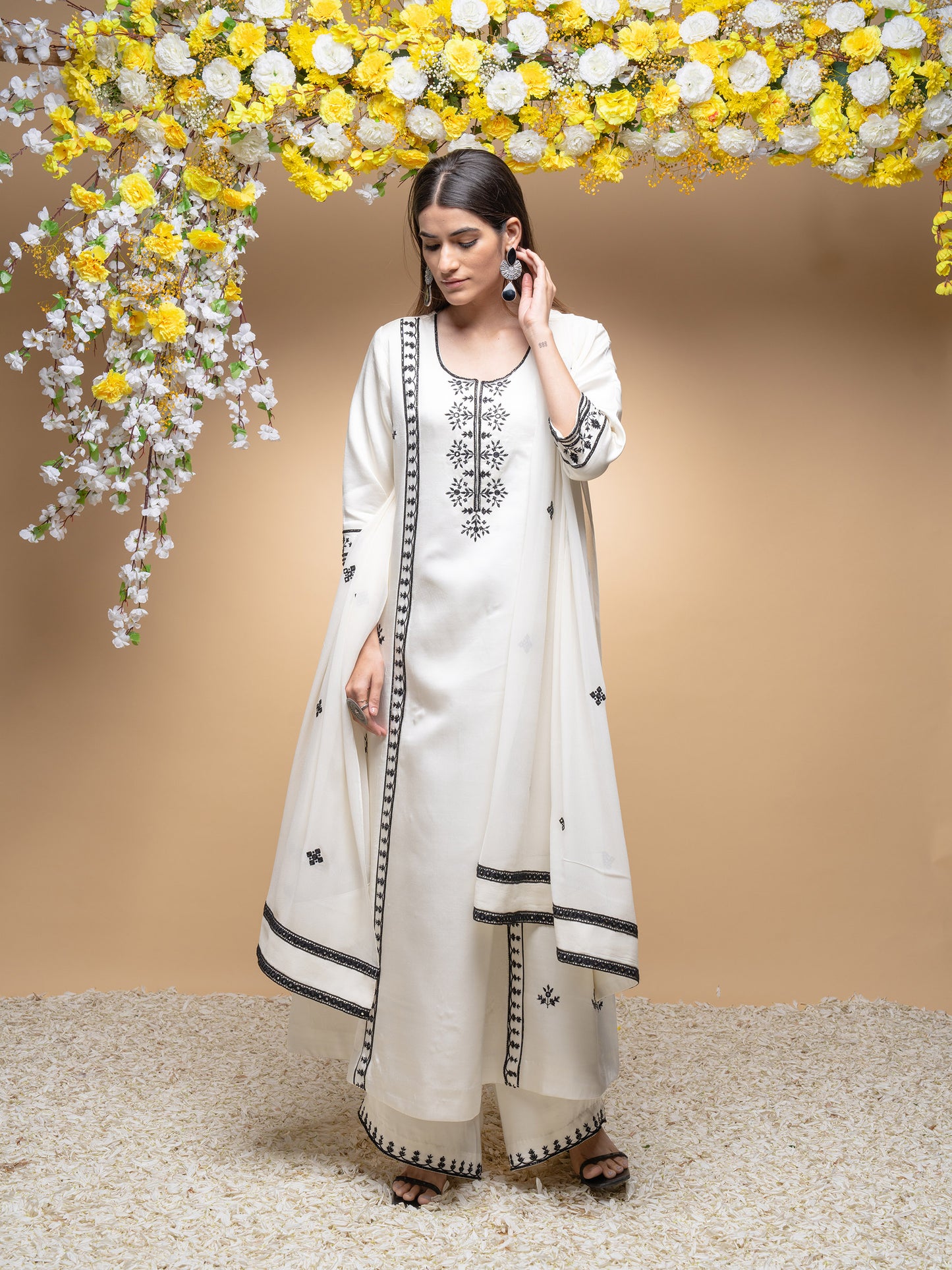 Ivory And Black Classic Kurta Set With Mirror And Dori Work Embroidery
