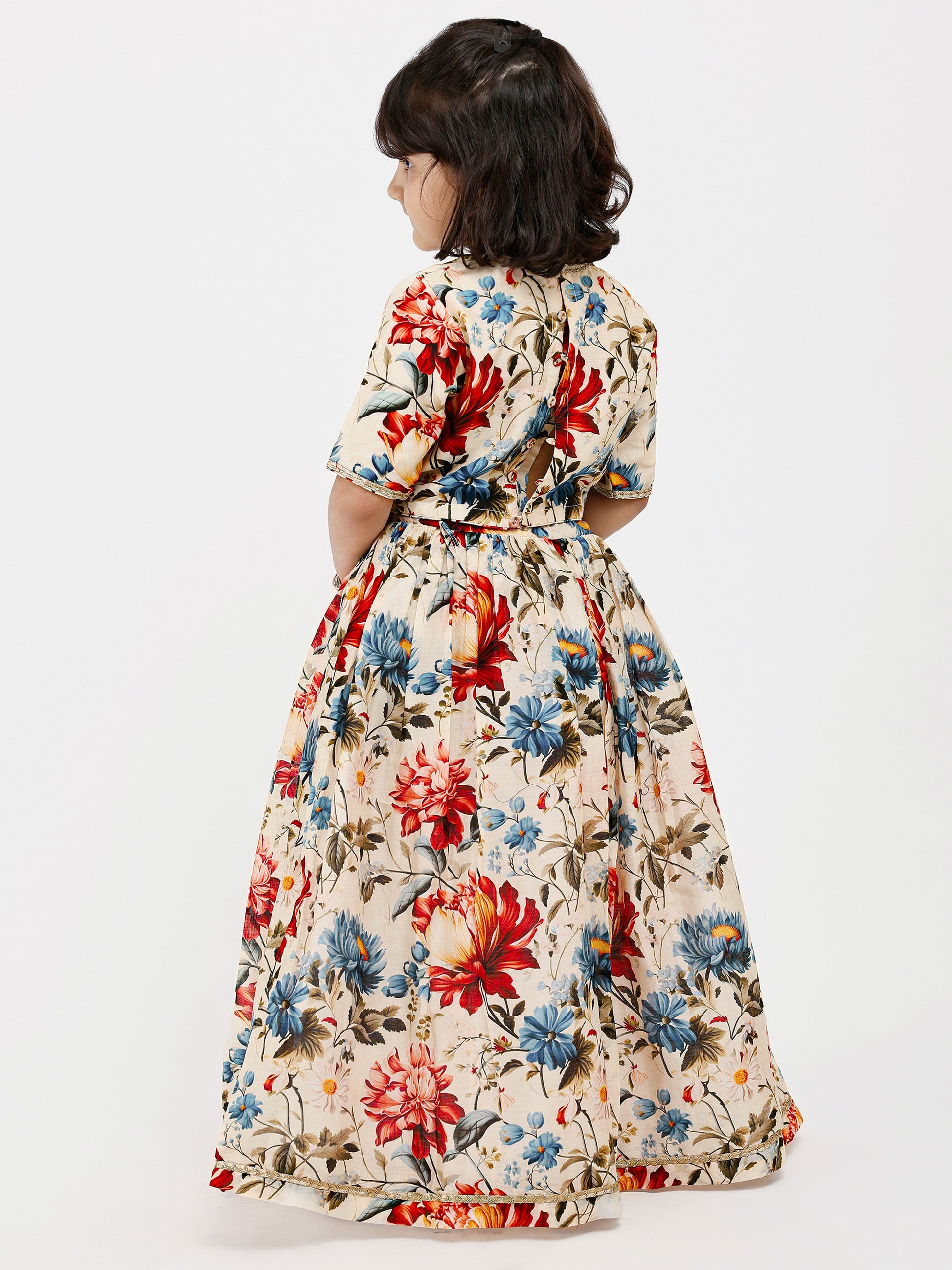 Ivory Floral Handwoven chanderi Kids lehenga