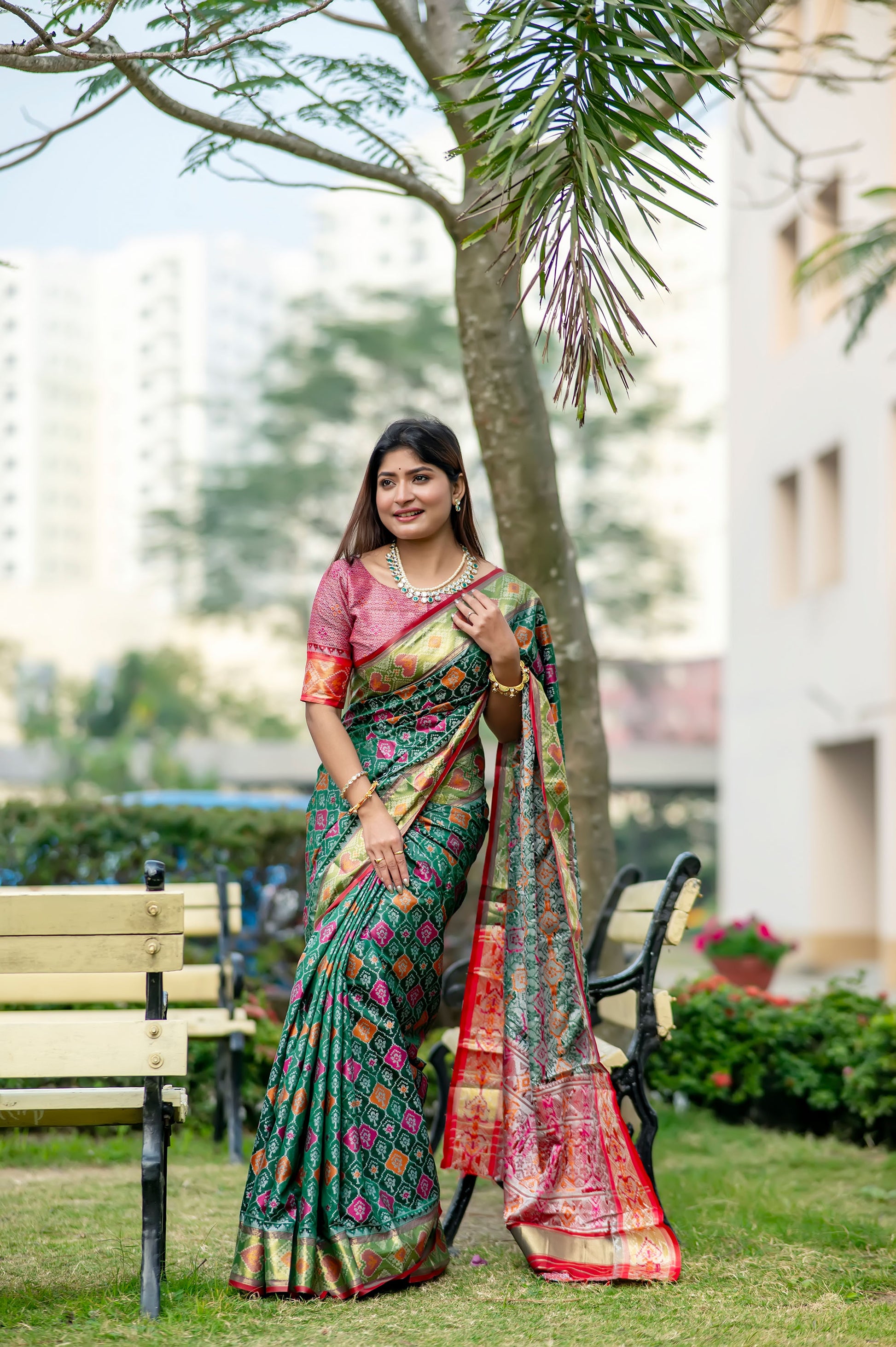 Krina Green Banarasi Silk meenakari patola weaves Saree