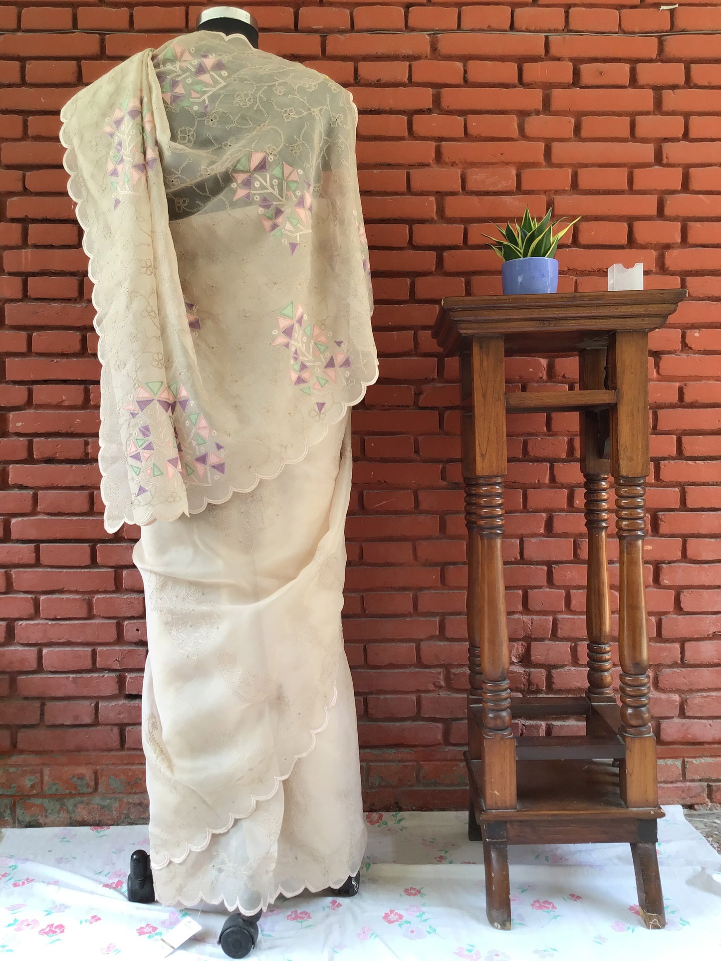 Light Baish Pure Silk organza Tepchi Pure Chikankari Saree