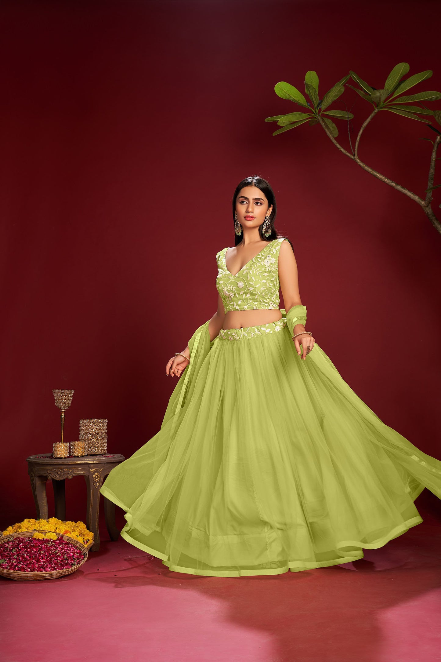 Light Green Color Embroidered Taffeta Silk Lehenga